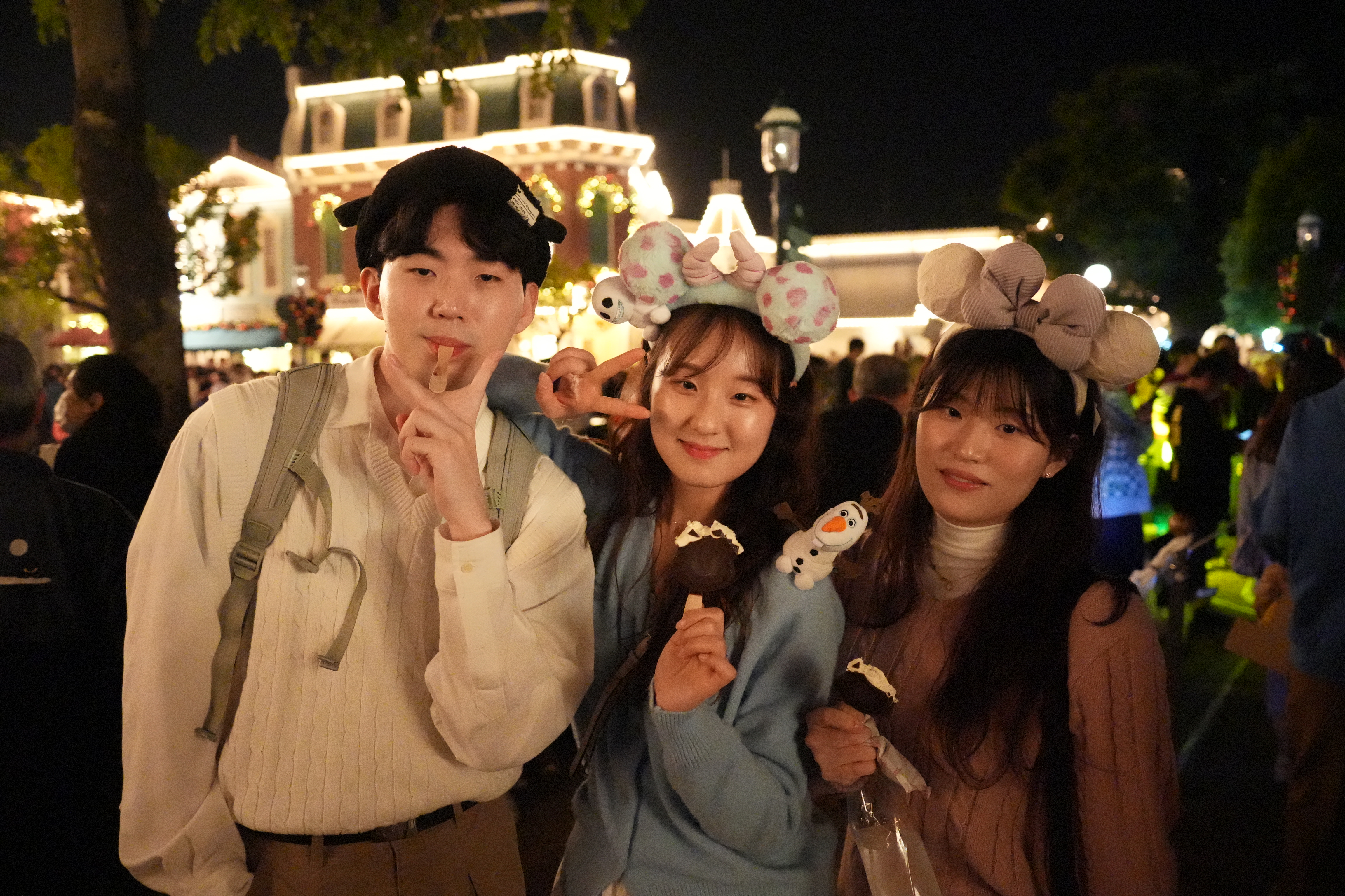 韓國遊客Yeong Mian Kwon喜歡人氣氣色Elsa和Olaf,知道香港迪士尼有冰雪奇緣主題園區,而且有「跨年倒數時刻」的煙火表演,特意趁假期與朋友來港旅遊四天,估計三人連同票價在樂園花費約四千元。Mian Kwon大讚香港的美食,未來若有機會會再次訪港。