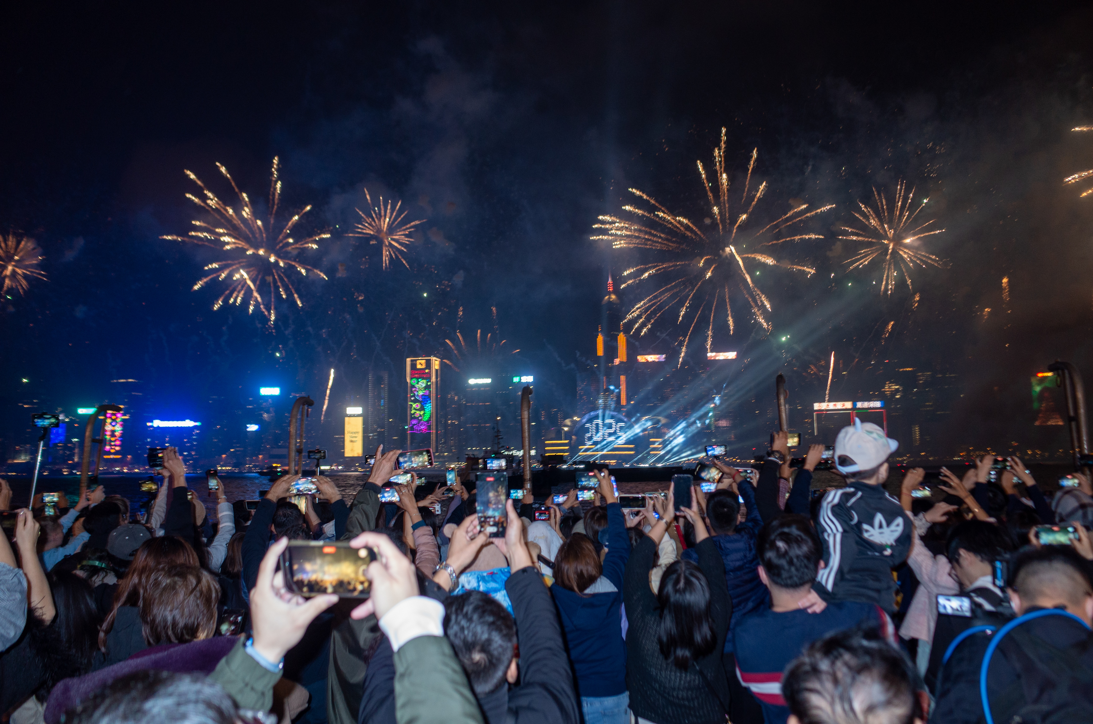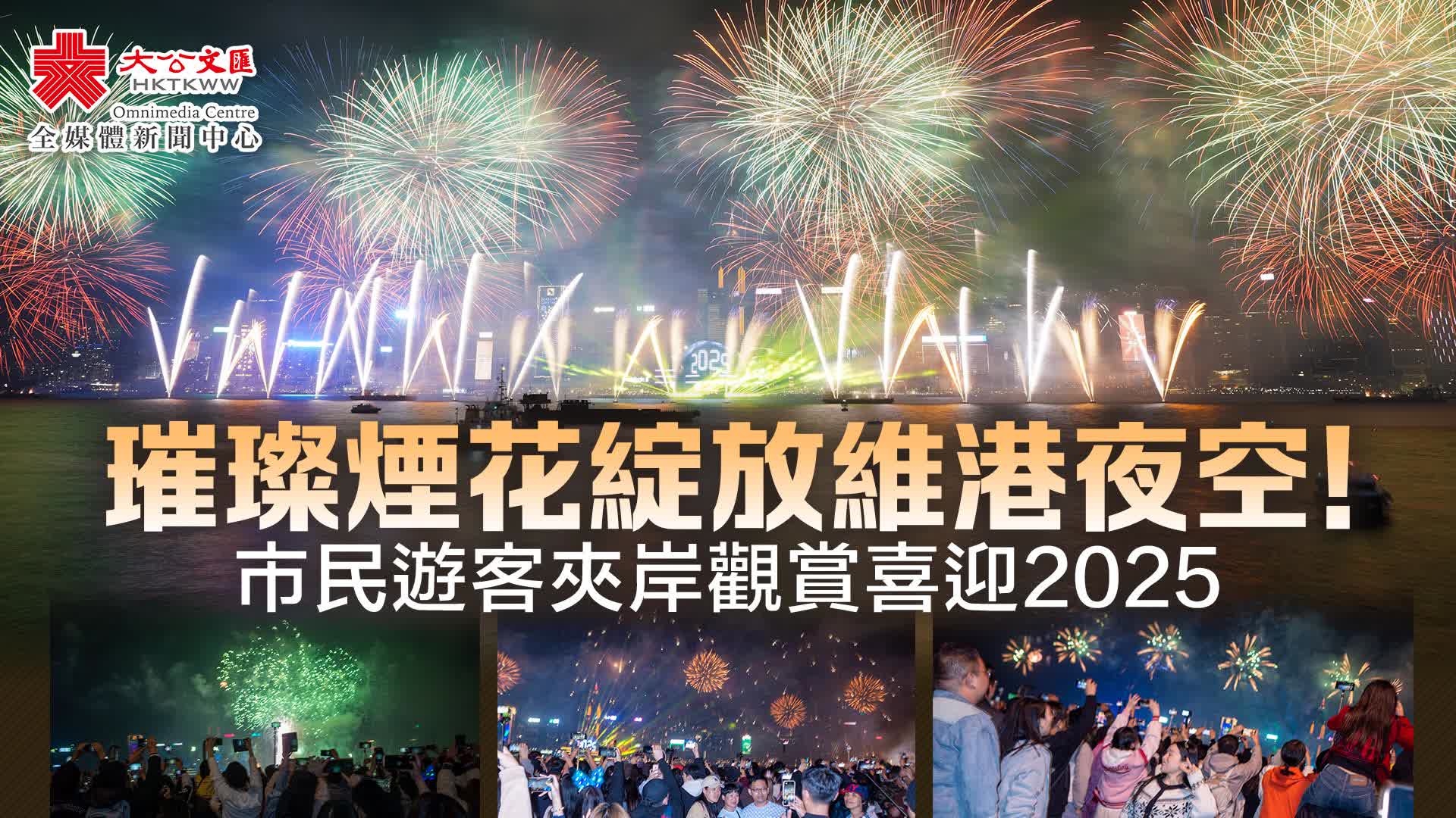 大公文匯全媒體記者報道,2025年來了!全城最期待的跨年倒數煙花匯演在維港兩岸熱烈上演!以「幸福樂章」為主題的煙花匯演長達12分鐘,於2025年1月1日零時綻放,迎接2025年的到來!