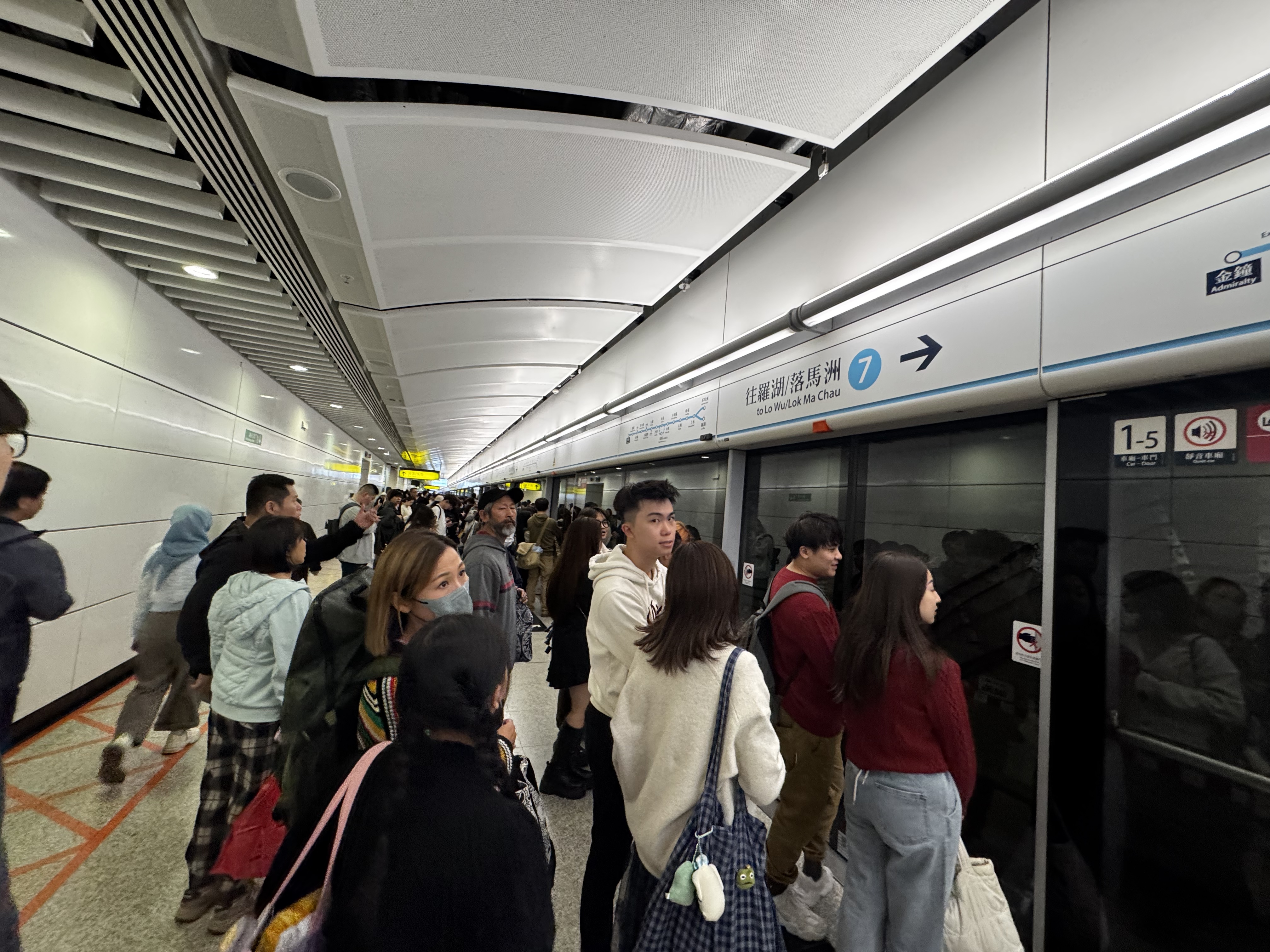 在尖沙咀站外,人流被巧妙地一分為二,一部分旅客被引導繞道前往佐敦站,另一部分人群則進入尖沙咀地鐵站。這一策略使得尖沙咀站內人流有序,沒有出現過度擁擠的情形。記者也在緊張的情況下,趕上了東鐵綫在12時56分從金鐘發出的末班車,順利返回羅湖口岸。