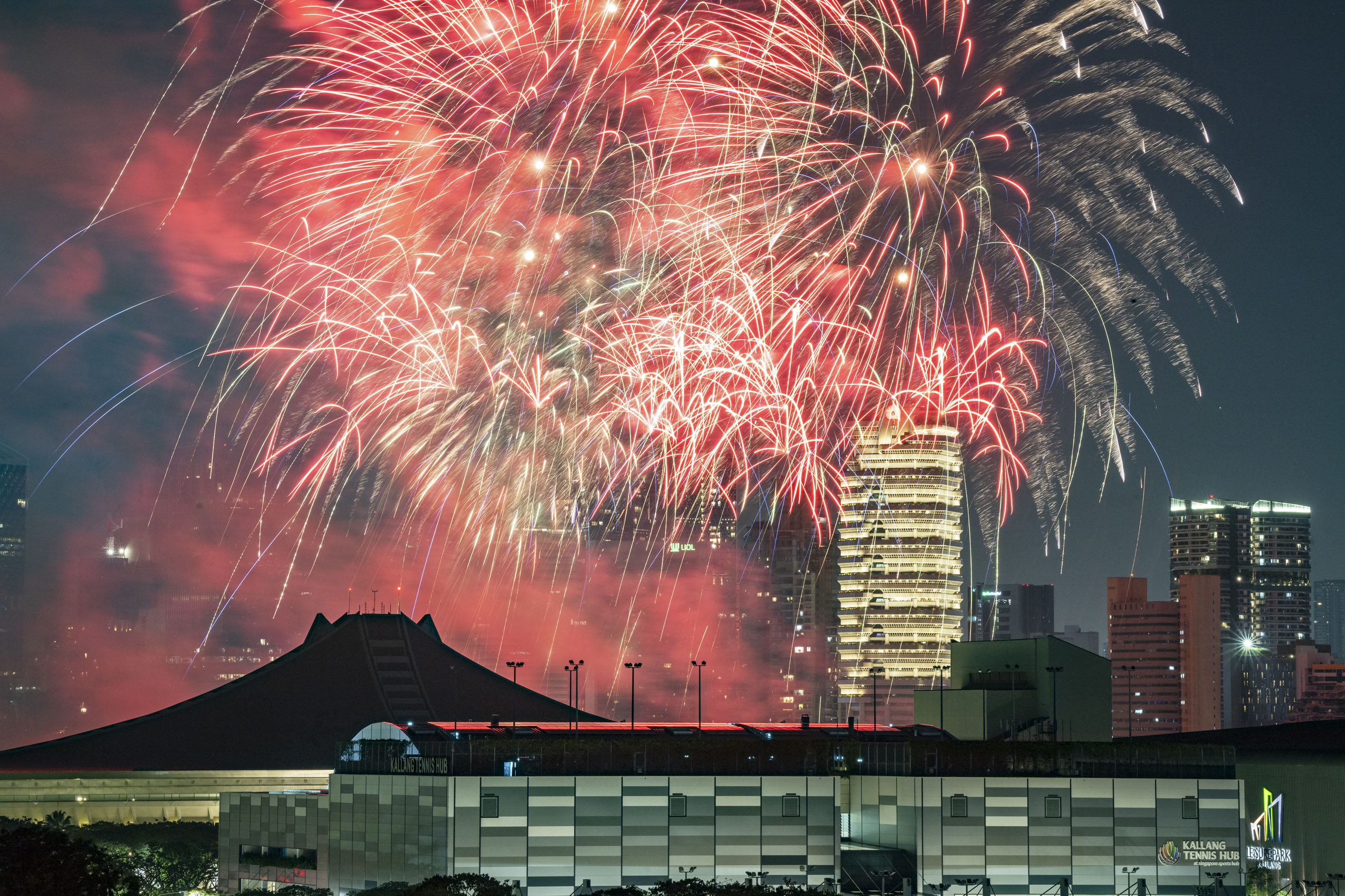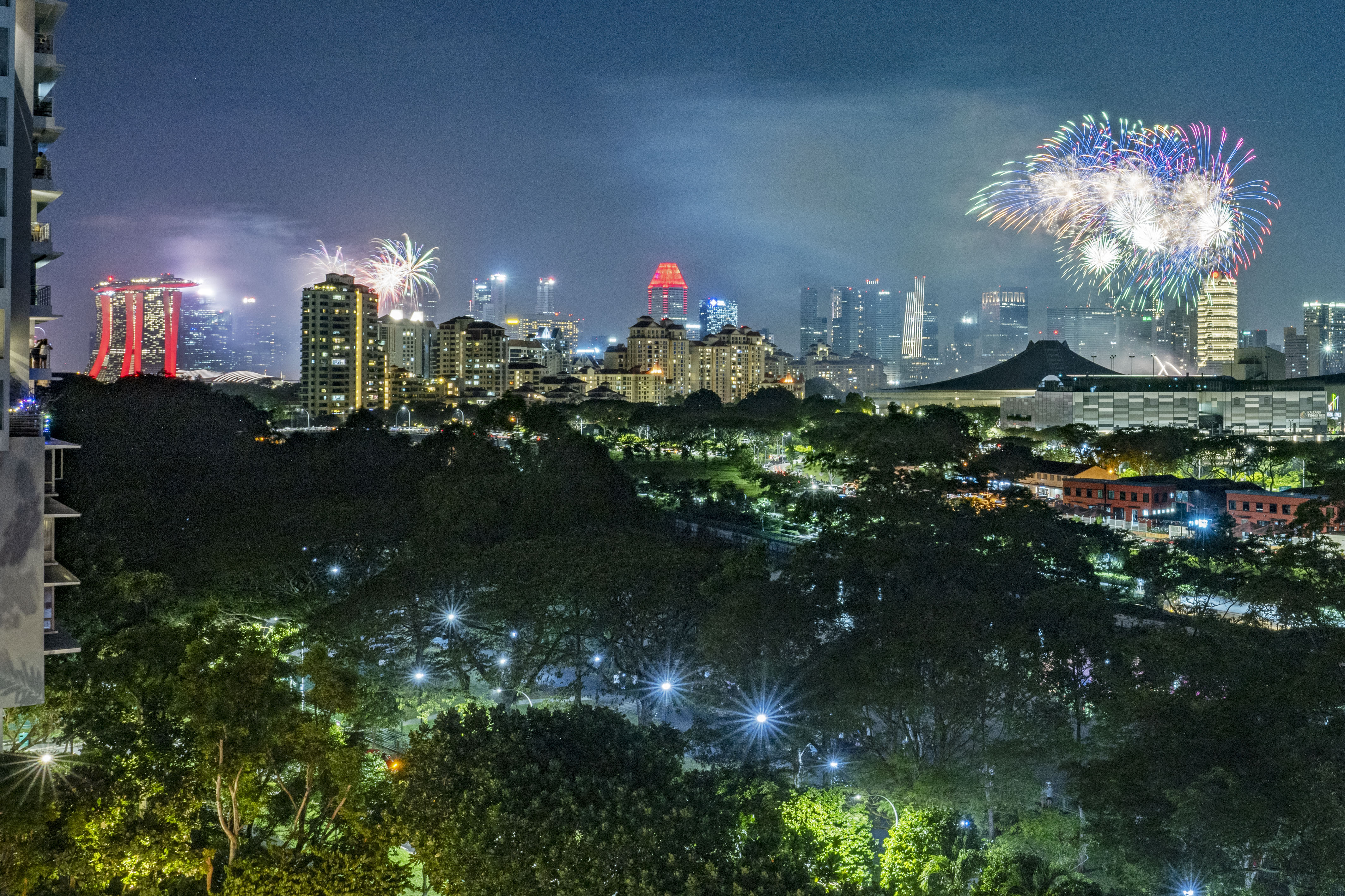 新加坡今年將迎來建國60周年。在跨年夜,濱海灣上空綻放大型煙火,數十萬人在濱海灣一帶觀看,迎接新年。