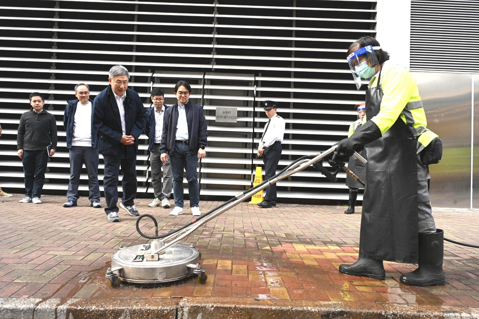 大公文匯全媒體報道,政務司副司長卓永興早前走訪本港多地,視察食環署使用高速清洗盤清洗灣仔港灣道及多區街道的情況。卓永興表示,欣喜看到有關街道經改善衞生兩年多後,仍能保持清潔。