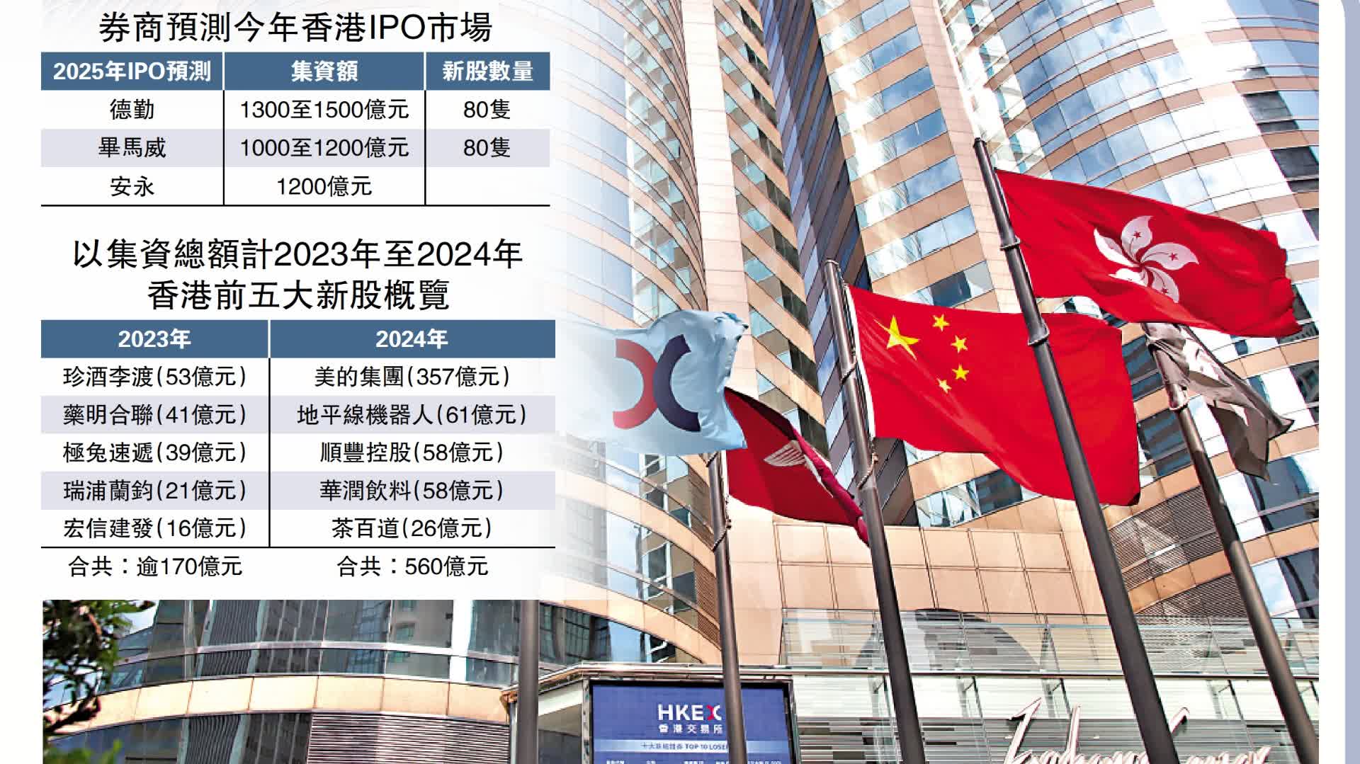 以上述三隻大型潛在IPO計算,合計集資額或高達85億美元(約659.9億港元),較去年前五大新股集資總額約500億元高出近兩成,料可為2025年IPO提供有力支撐。