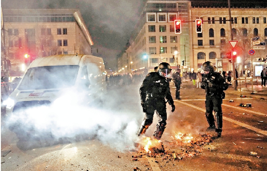 德國人喜歡在跨年夜燃放威力強大的煙花爆竹,此次跨年期間至少5人因此失去生命。死者包括一名24歲男子,警方稱其疑似被自製煙花炸死。多地還發生狂歡者用煙花襲擊警察和消防人員的事件,僅在柏林就有30名警察和1名消防員受傷,約400人被捕。法國內政部長勒塔1日晚表示,法國各地近千輛汽車遭縱火,還發生多宗非法燃放煙花爆竹事件,約420人被捕。