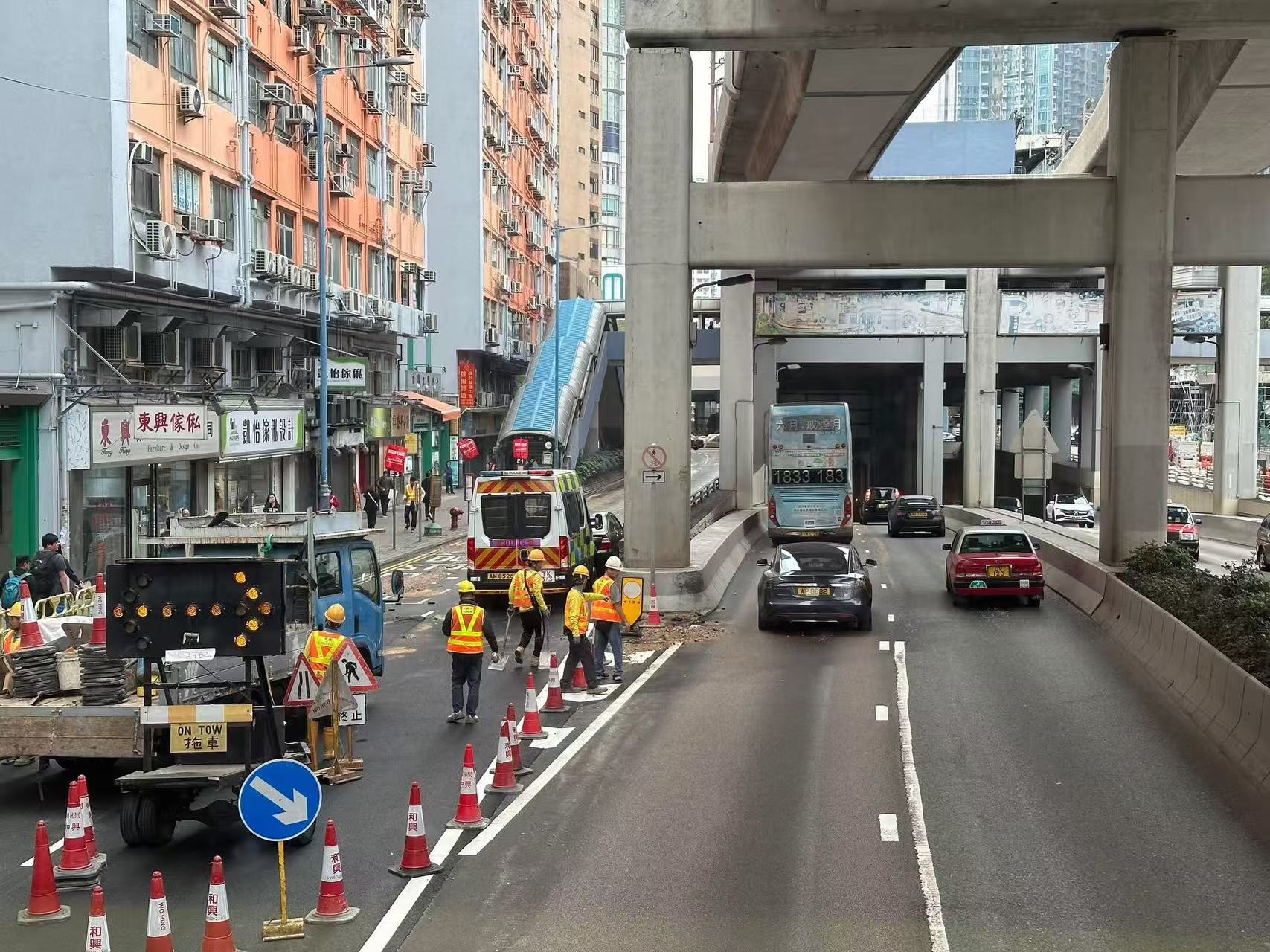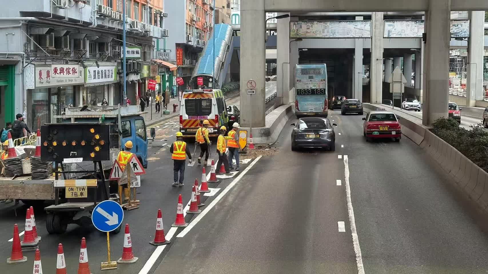 大公文匯全媒體報道,觀塘道有水管爆裂。運輸署今日(3日)表示,因水管緊急維修,觀塘道往旺角方向近開源道迴旋處的部分行車線仍然封閉,駕駛人士只可使用餘下行車線。