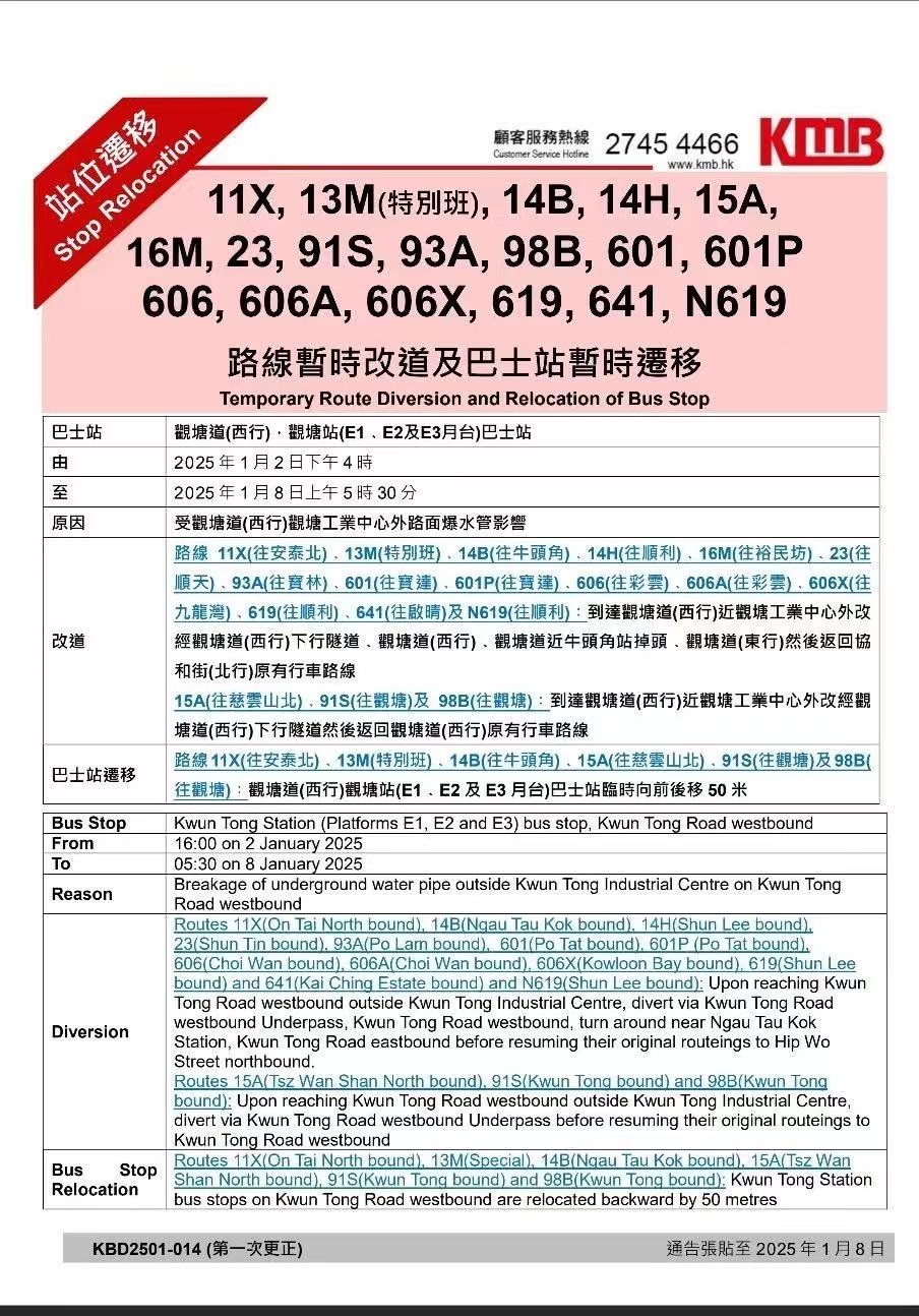 受事件影響,部分九巴路線須改道行駛。在早上繁忙時間,不少乘客在臨時巴士站上、下車。有市民下車才發現車站位置後移,但指班次未有受影響,沒有妨礙上班。