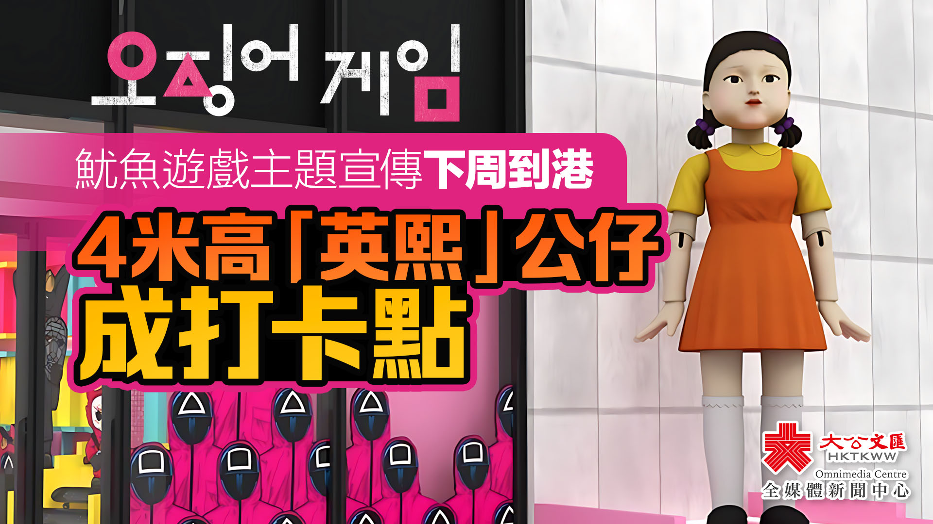大公文匯全媒體報道,隨着Netflix熱門劇集《魷魚遊戲》第2季的播出,其主題宣傳活動將於下周五(1月10日)在港展開。此次宣傳活動的亮點之一就是這尊與電影中「一模一樣」的「英熙」公仔娃娃,這尊娃娃高達4米,此前已在全球各地展覽。