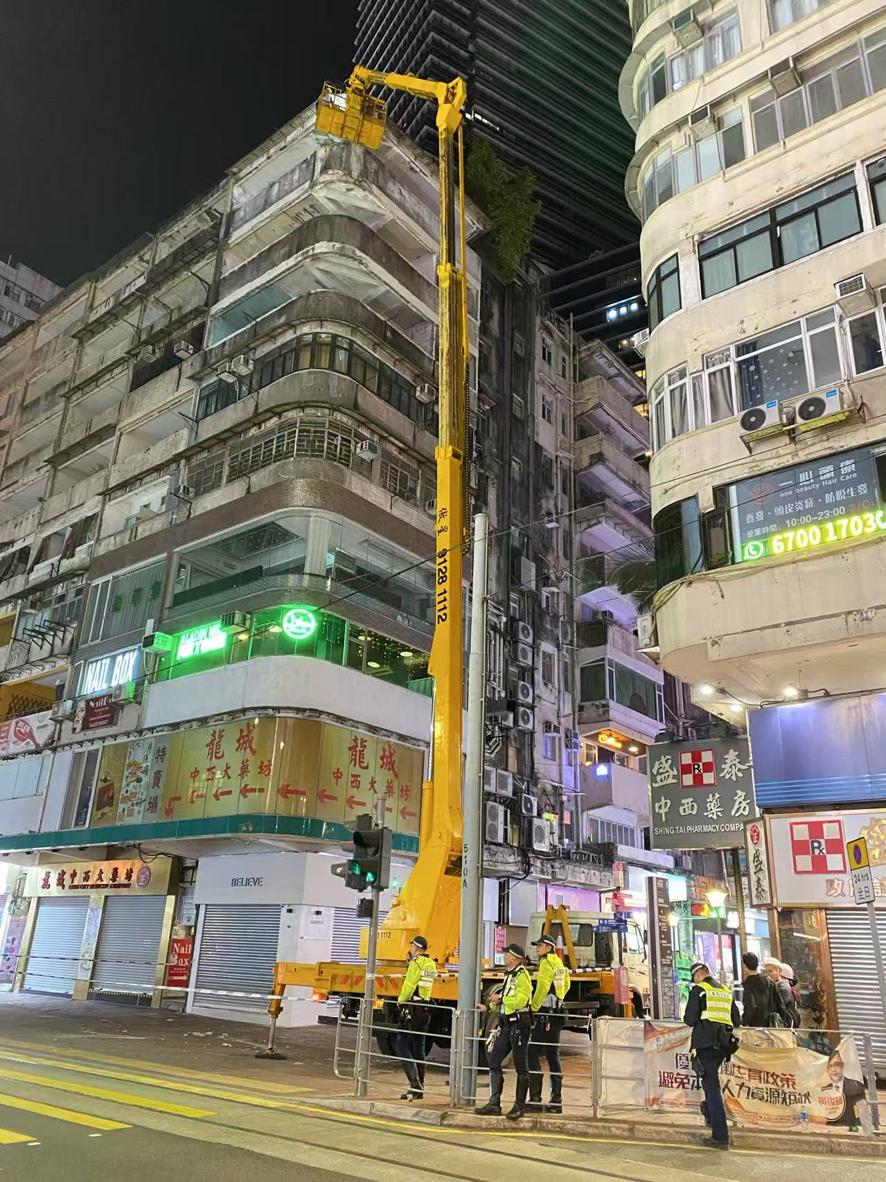 發展局表示,署方接獲通知後昨晚立即派員視察,在警方協助下暫時圍封受影響行人路段,並即時安排政府承建商全面檢視大廈外牆和移除有可能鬆脫的石屎。緊急工程完成後,相關路段已解封,事後亦會向相關業主收回工程費用。此外,因應風險評估,署方早前已將該幢樓宇納入為「樓宇更新大行動2.0」第二類別樓宇,由政府主動介入驗樓和代辦工程。