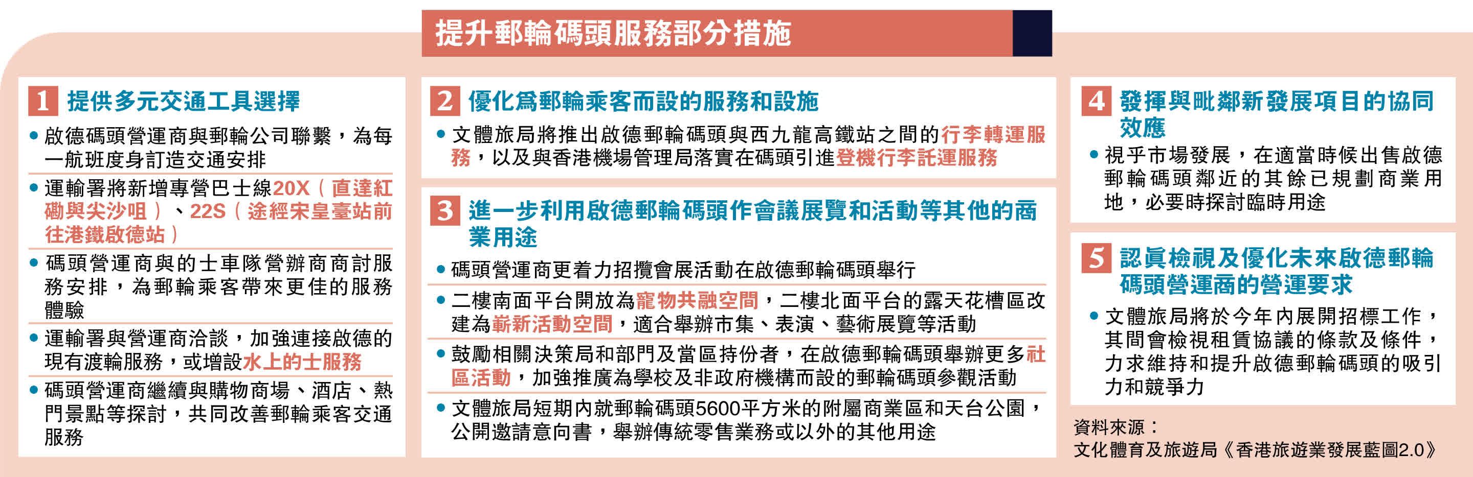 (大公報 記者 劉碩源)郵輪業國際協會預計2028年全球郵輪旅客增至4000萬人次,本港的啟德郵輪碼頭營運商合約將於2028年屆滿,政府早前公布的《香港旅遊業發展藍圖2.0》提出,今年內就啟德郵輪碼頭營運商展開重新招標。文化體育及旅遊局局長羅淑佩昨日表示,考慮為承辦商制訂指標,例如須承諾每年吸引郵輪停泊日數。她並指出,郵輪碼頭須轉型,當局將動用碼頭空間打造表演場地、青年藝術家孵化基地等。