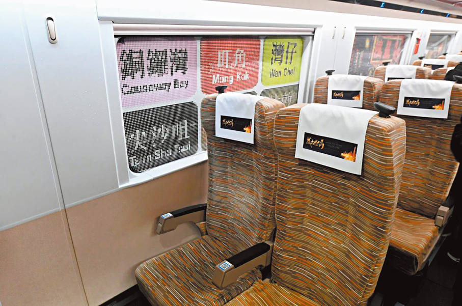 「我們已準備好了,期待為往來西安與香港的旅客開啟一段美好的旅程。」此次首發的復興號列車,其中最引人關注的就是11號「香港印象」主題車廂。「該車廂內外車窗均採用馬賽克海報裝飾,有香港風景,有香港地標,還有茶餐廳的標識等。」據首發列車長李吉雙子介紹,除了車窗,「香港印象」主題車廂行李架上還布置了祥雲圖案,隨處可見的香港元素,希望能讓旅客在車廂內充分感受香港時尚之都的絢麗風采。