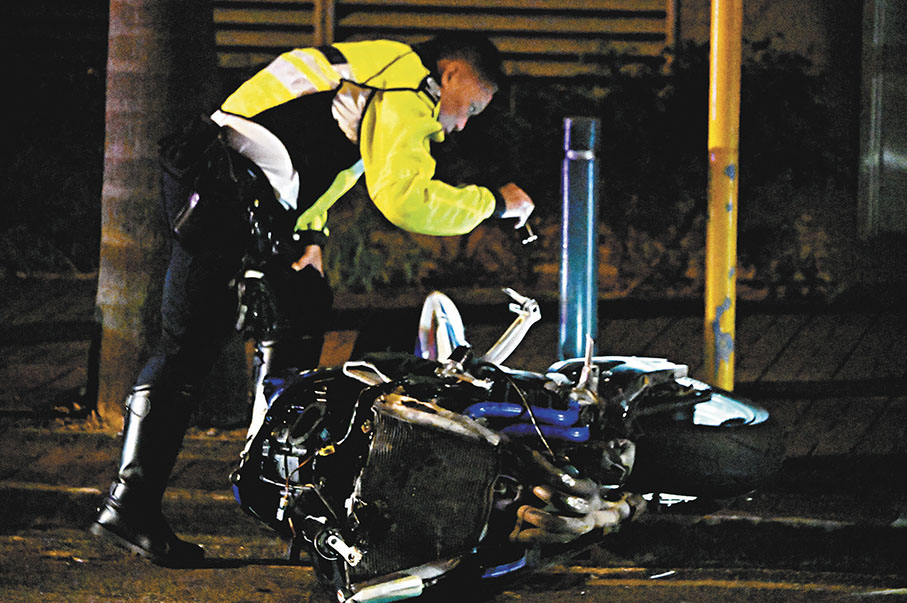 前日下午5時許,一名正駕駛電單車的鐵騎士疑因其行車證違規,在宏照道被交通警員要求停下受查,但該鐵騎士未有遵循及加速逃走,交通警員電單車響號和閃警燈,與電單車保持一定距離尾隨追截。電單車在附近一帶繞圈,駛至宏基街近中央郵件中心對開時,一名男子站出馬路中心疑試圖阻攔,但電單車未有減速直衝而過,男子閃避不及被撞中失平衡跌倒,電單車繼續行前駛,失控撞向路壆翻側。鐵騎士飛彈墮地重傷,其後證實身亡。
