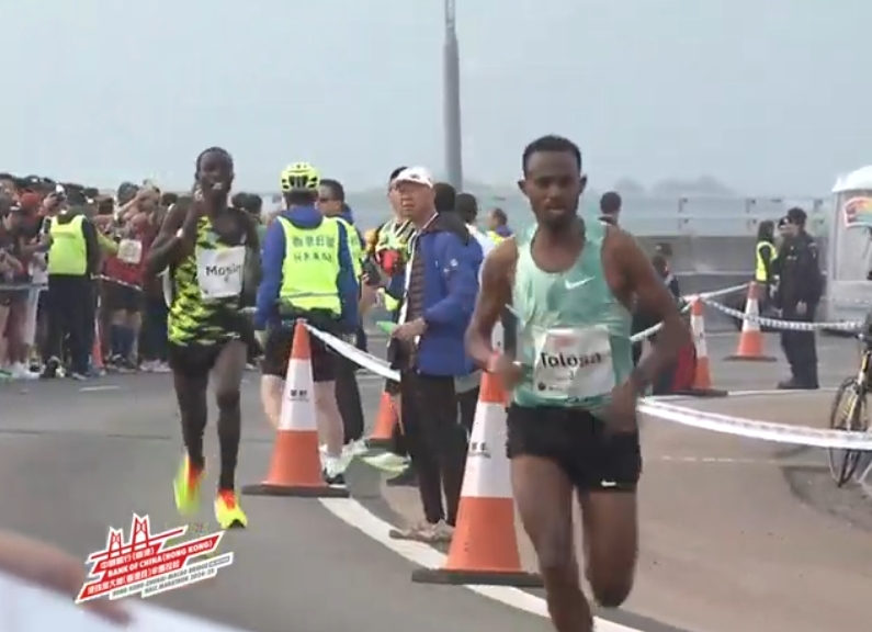 大公文匯全媒體報道,第二屆港珠澳大橋半馬拉松今早(5日)舉行,首個挑戰組賽事今早7時15分在港珠澳大橋香港連接路起步。去年柏林馬拉松冠軍托路沙(Milkesa Mengesha Tolosa)與來自肯尼亞的莫先(Patrick Mousin)幾乎鬥足全程,最終托路沙以1小時01分28秒、領先3秒優勢奪得男子全場總冠軍。來自肯尼亞的Nawowuna Grace Loibach則以1小時07分57秒稱后。