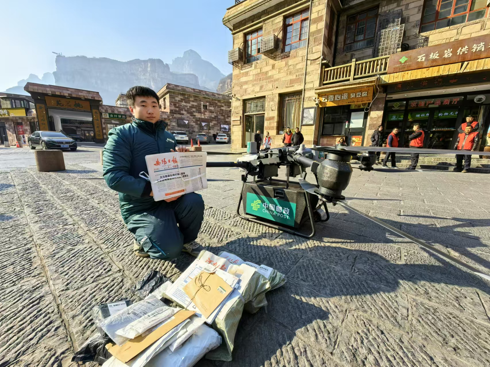 「以往黨報黨刊下午才能送到,今天上午10點鐘,我們就讀到了當天的《安陽日報》,『無人機郵遞員』就是快。」收到報紙的石板岩鎮鎮長王培麗說,「希望能多開通通往石板岩鄉村的空中郵路,讓山區的老百姓不出家門就能享受到更便捷的郵政服務。」