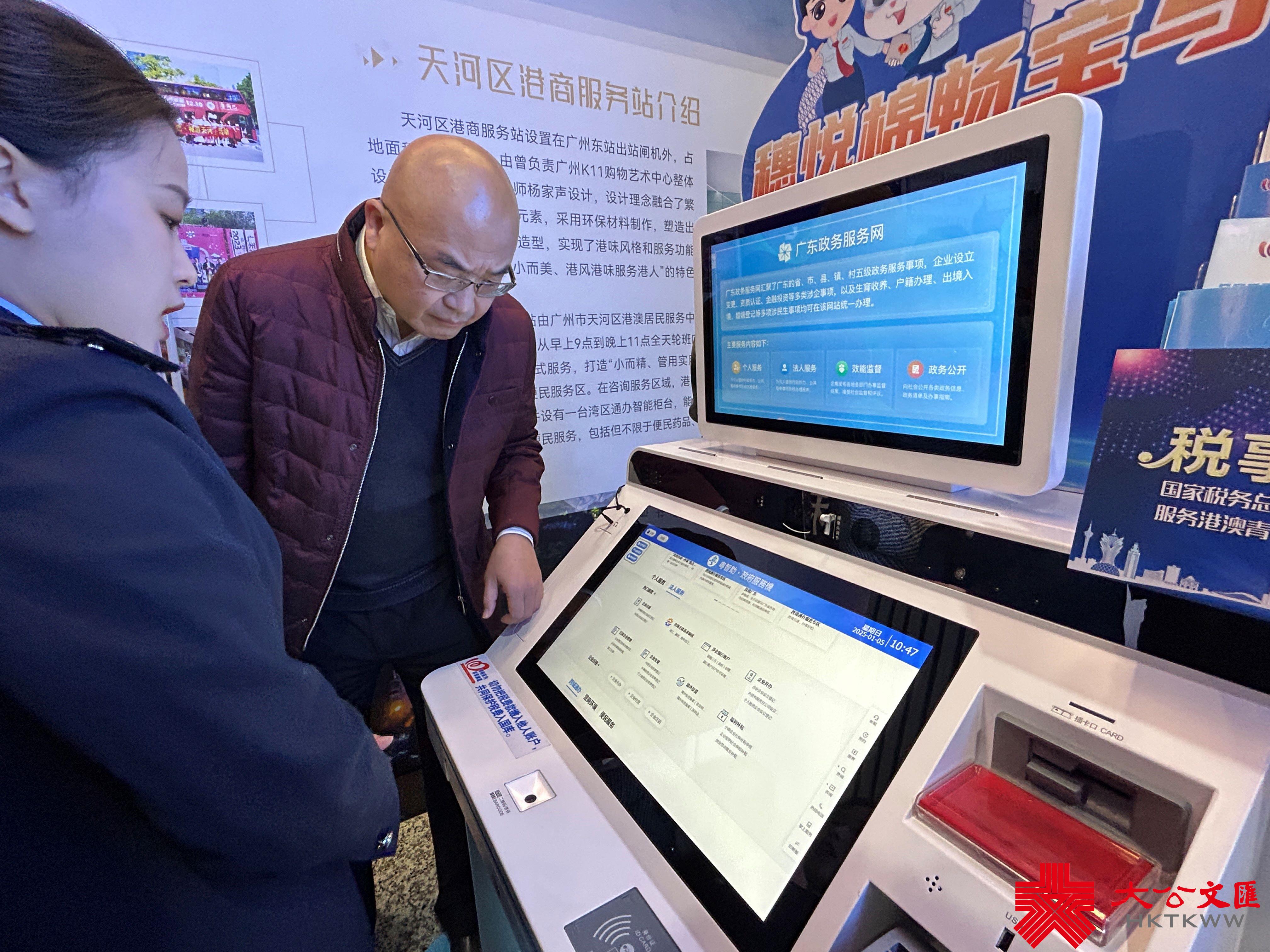服務站還聯動了兩地政府資源。香港特區政府大灣區推廣中心將天河區服務站作為大灣區內地城市服務港澳居民的重要平台,並納入香港貿發局「GoGBA港商服務站」網絡;廣州天河區稅務局設置了灣區通辦智能櫃枱,能夠實現超500項政務及稅務事項便捷化辦理;中國移動則為服務站和來穗港澳人士提供免費跨境網絡服務。服務站還配套了浦發銀行的外幣兌換服務點。