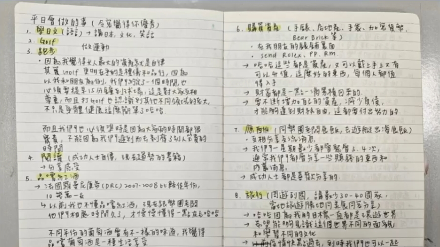 警方揭露部分「行騙指南」,包括在交友平台建立一些人物設定,「平時會做的事」包括學日文、打Golf、跑步、閱讀、品嘗紅酒、購買資產、應酬、旅行等。