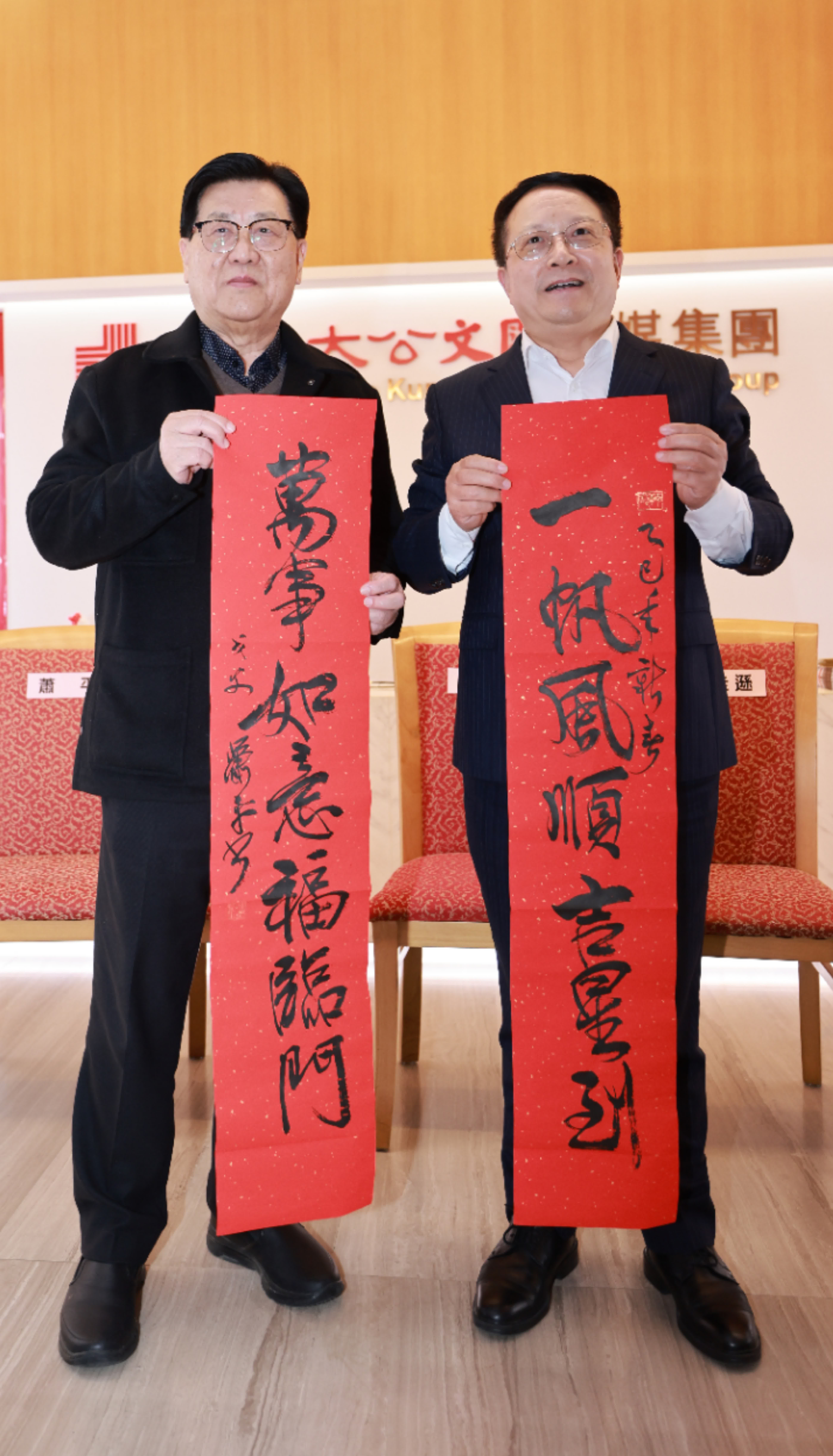 李大宏歡迎余珽一行到訪,對民進江蘇省委會蛇年新春之際組織書畫家來港祈福送福揮春表示支持。他說,江蘇民進書畫家們為香港市民揮春送福,以文會友,以文潤港,令人感佩,大文集團願意參與助力。