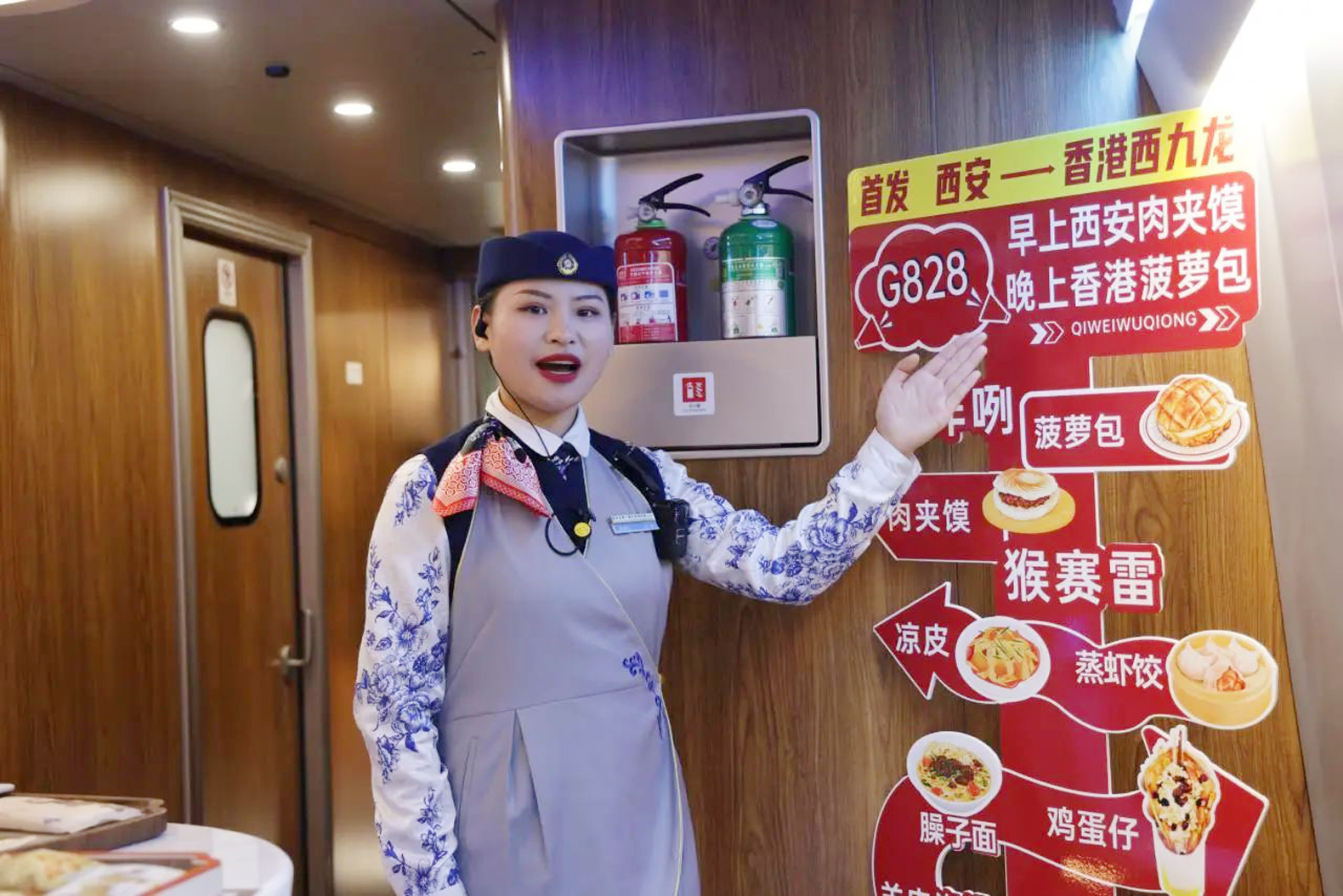 乘務人員告訴記者,旅客在兩節車廂之間行走,彷彿是在古代與現代、陝西與香港的時空間穿行,別有一番風情。這種歷史氣息撲面而來,又與香港現代潮流完美交融的巧妙設置,以及十足的沉浸感,獲得旅客一致讚譽。