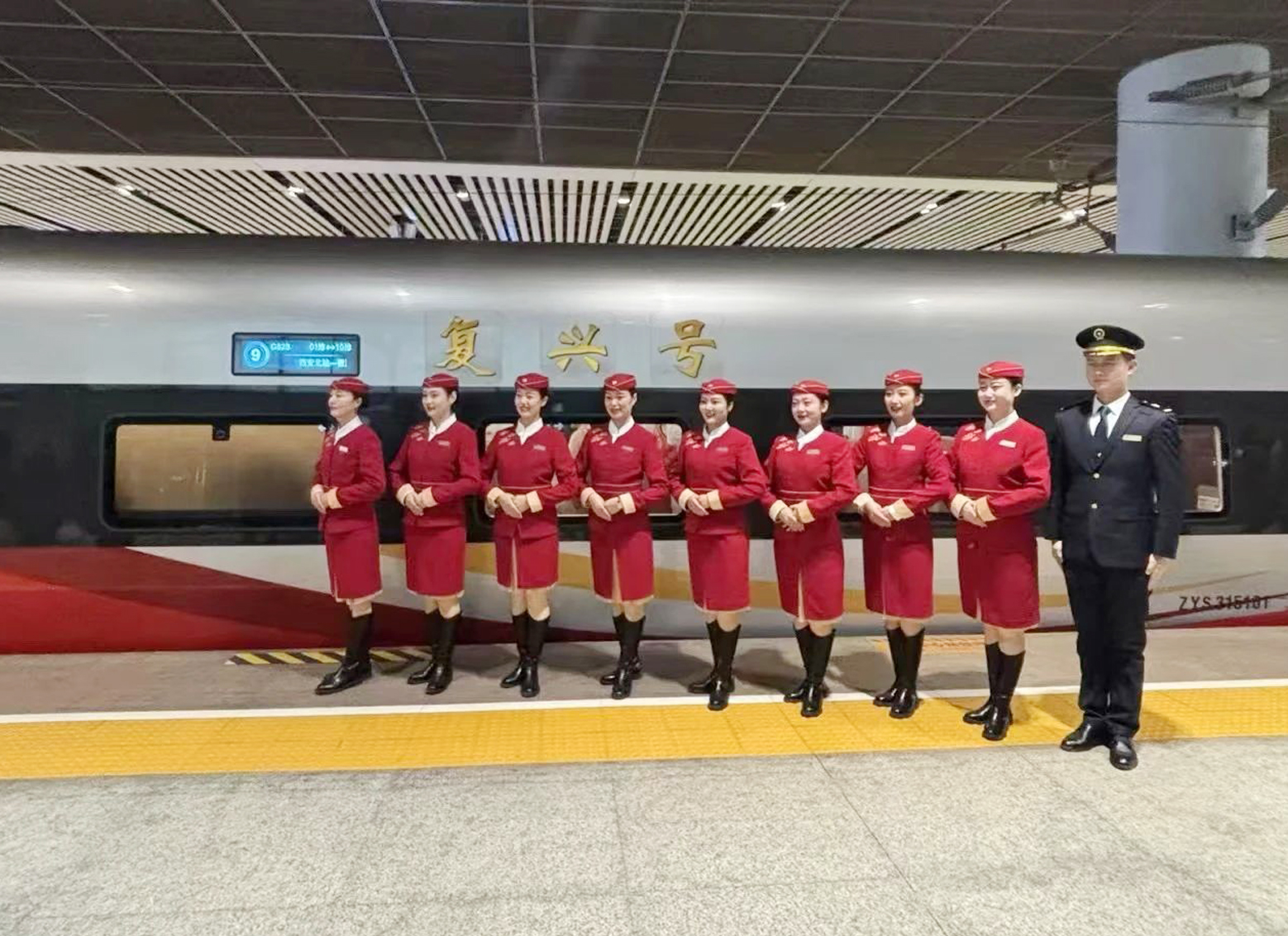 「哇,這列車的造型和塗色也太炫了。」當日10時40分左右,隨着入站閘門開啟,許多旅客幾乎是一路小跑着來到車前,只為能在登車前有限的時間內記錄下更多難忘的瞬間。「你看這是龍頭,這是鳳尾,還有國旗紅、故宮紅、祥龍黃。」「果真是龍騰四海、鳳舞九天,吉祥、喜慶、大氣。」西安鐵路局相關人士表示,該型復興號智能動車組是我國自主研發的具有完全自主知識產權的新一代動車組,不僅外觀大氣美觀,同時設備更加智能,乘坐更舒適。