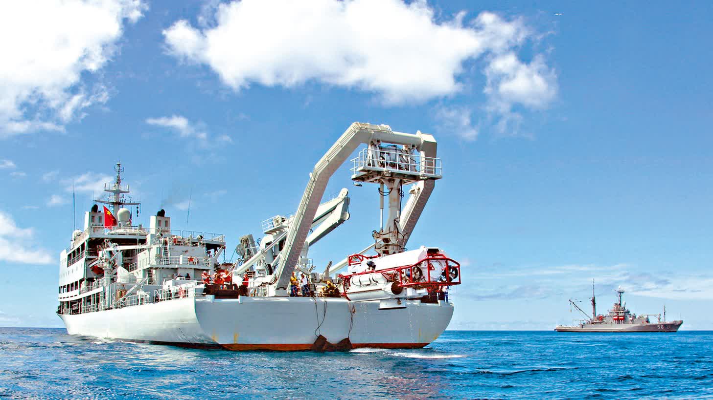 927型綜合援潛救生船2號艦「西湖」號,日前入列服役。約1.4萬噸級的西湖艦,配備大深度潛水鐘、深潛救生艇等多種援潛救生裝備,能夠執行搜索監測、救生、打撈、核輻射防護等任務,打通潛艇救援「最後一公里」,被譽為「潛艇守護神」。中國海軍大型援潛船達到5艘,為日漸壯大的潛艇部隊提供堅實保障,能夠在深藍遠洋為各型潛艇實施救助和支援。