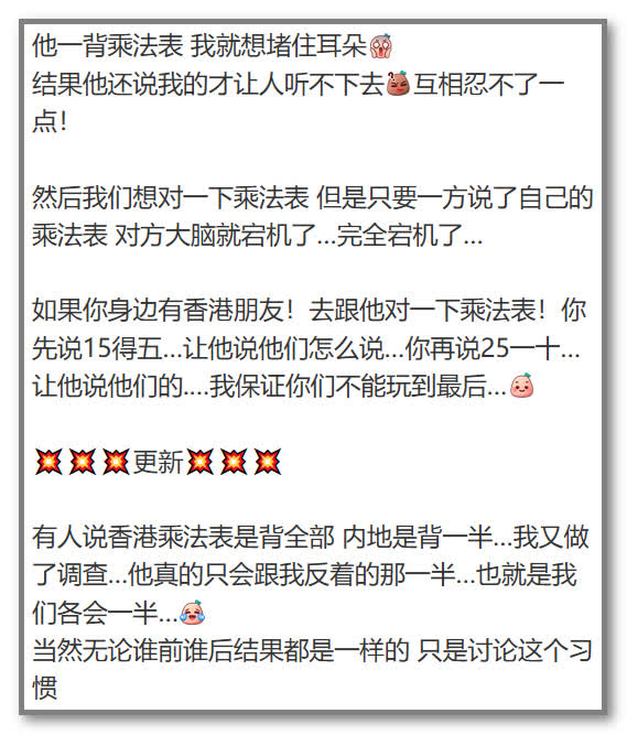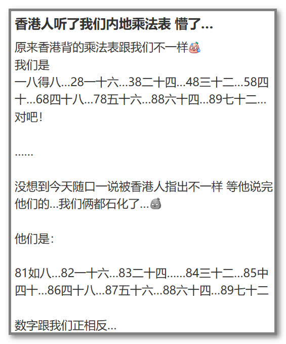微信原文鏈接:香港人聽了內地的乘法表,懵了