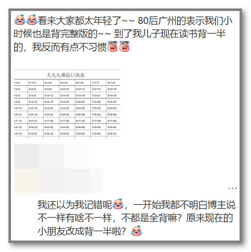對於「大九九」和「小九九」的區別,有網友說,背一半不就行了嗎?