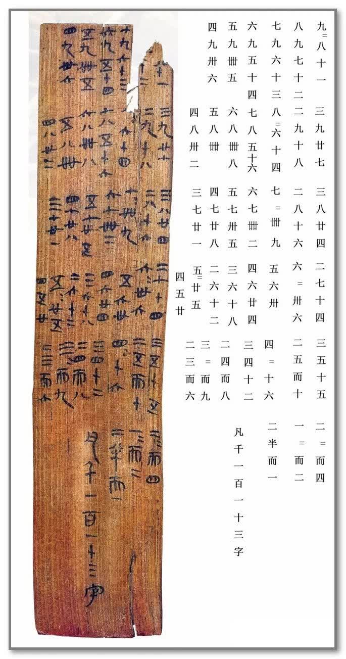 2002年,在湘西里耶出土的3.7萬枚秦簡中,有3枚保存十分完整清晰的「九九乘法表」,是目前全世界發現最早的「乘法口訣表」實物。
