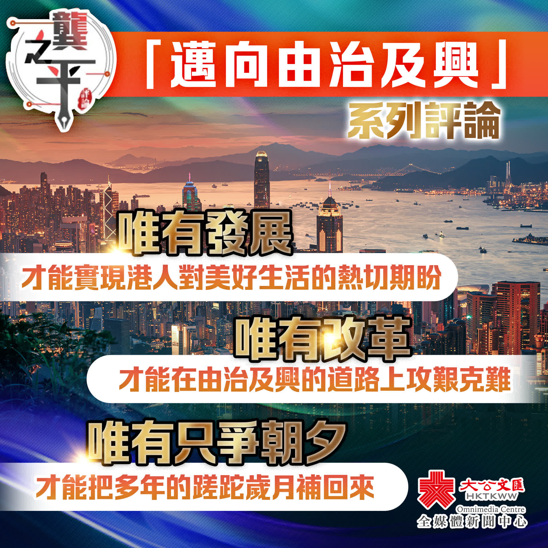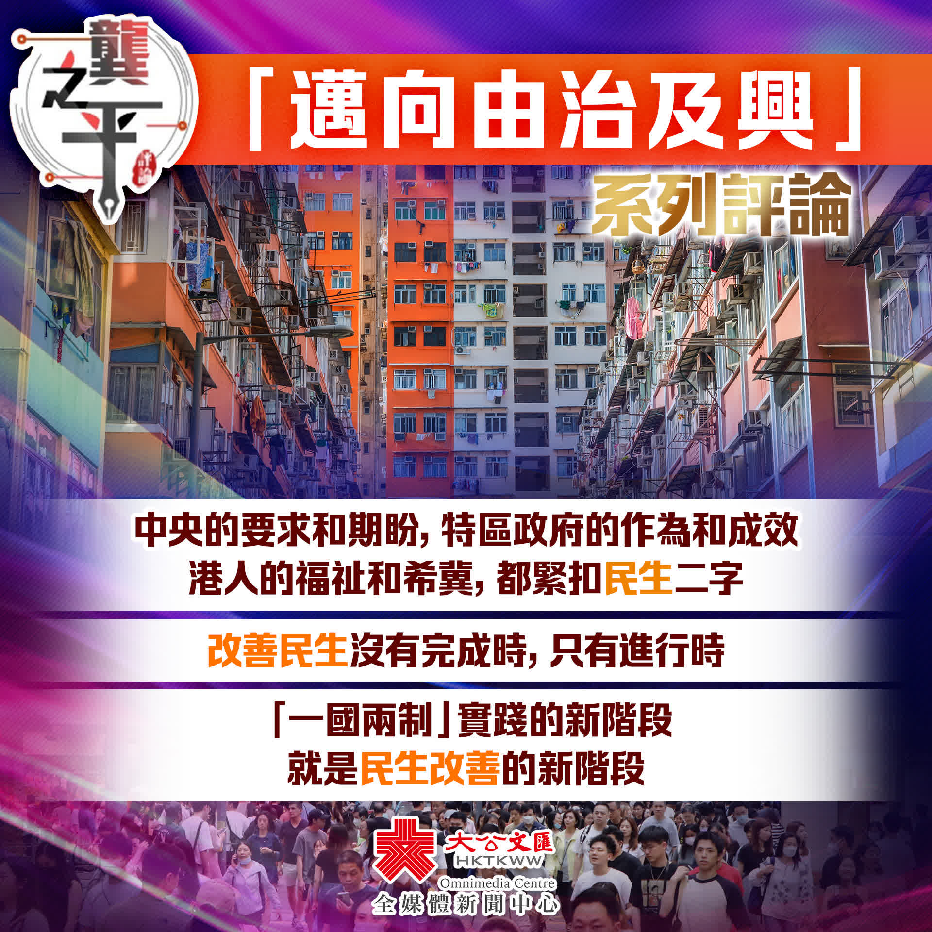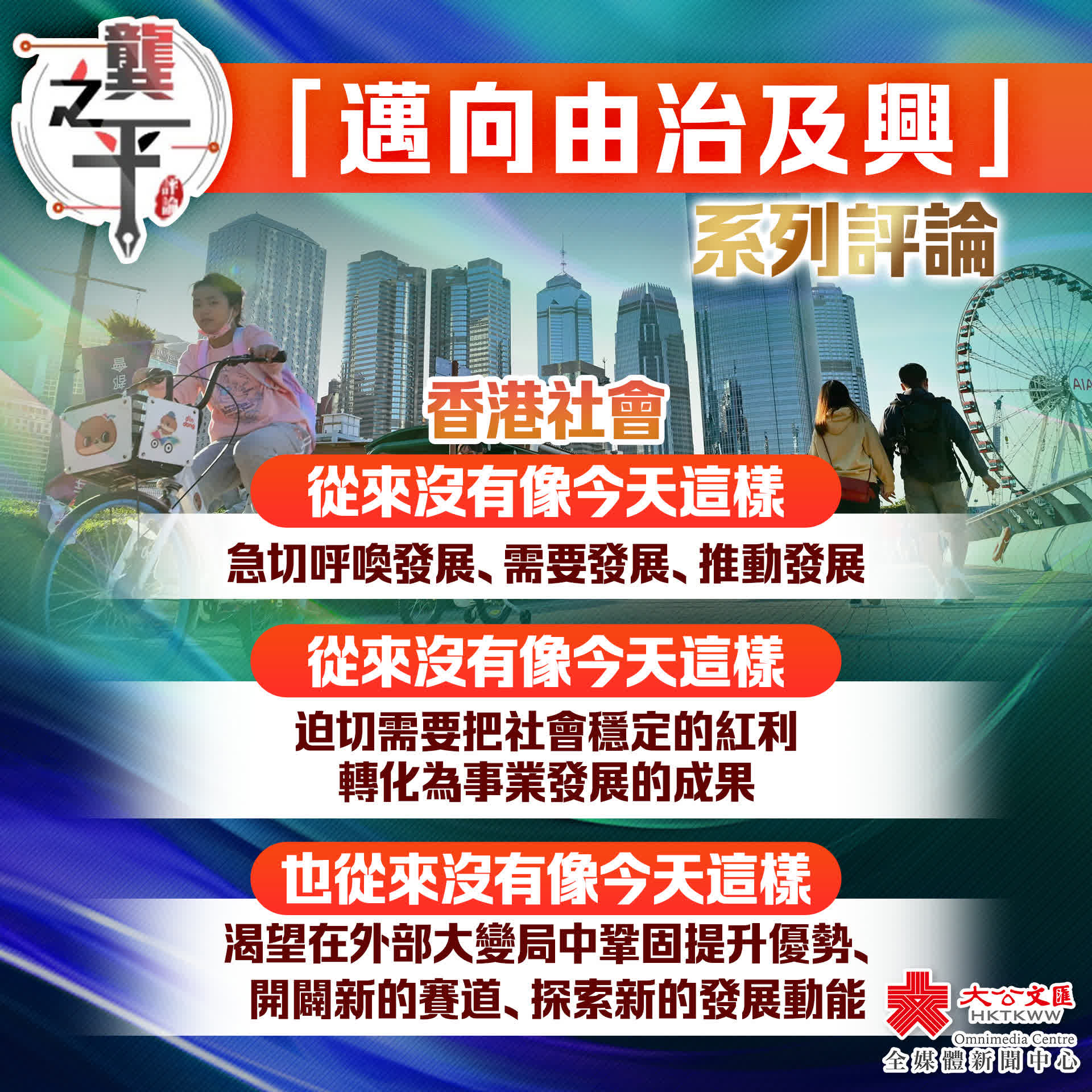 系列評論分為發展、國安、治理、民生、國際化五篇文章,現已刊發完畢,大公文匯全媒體製作了龔之平「邁向由治及興」系列評論的要點海報,快來多圖睇清!