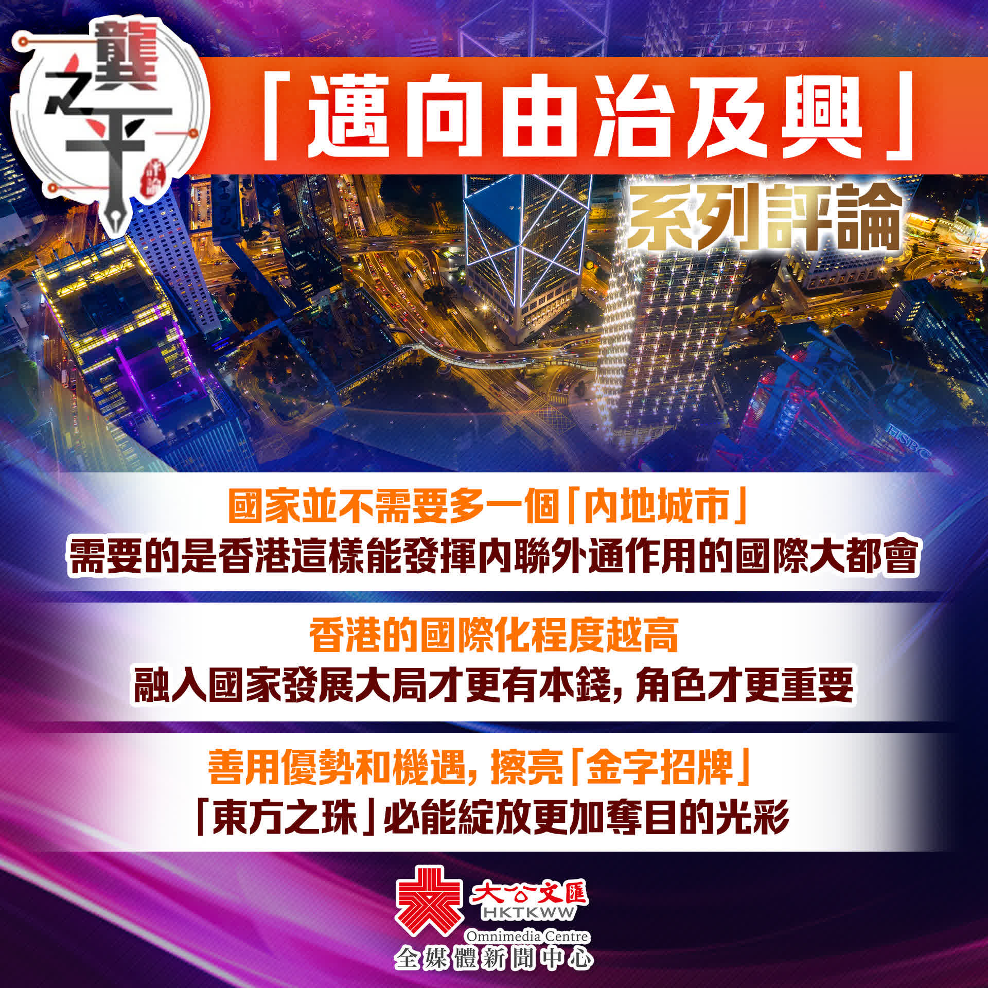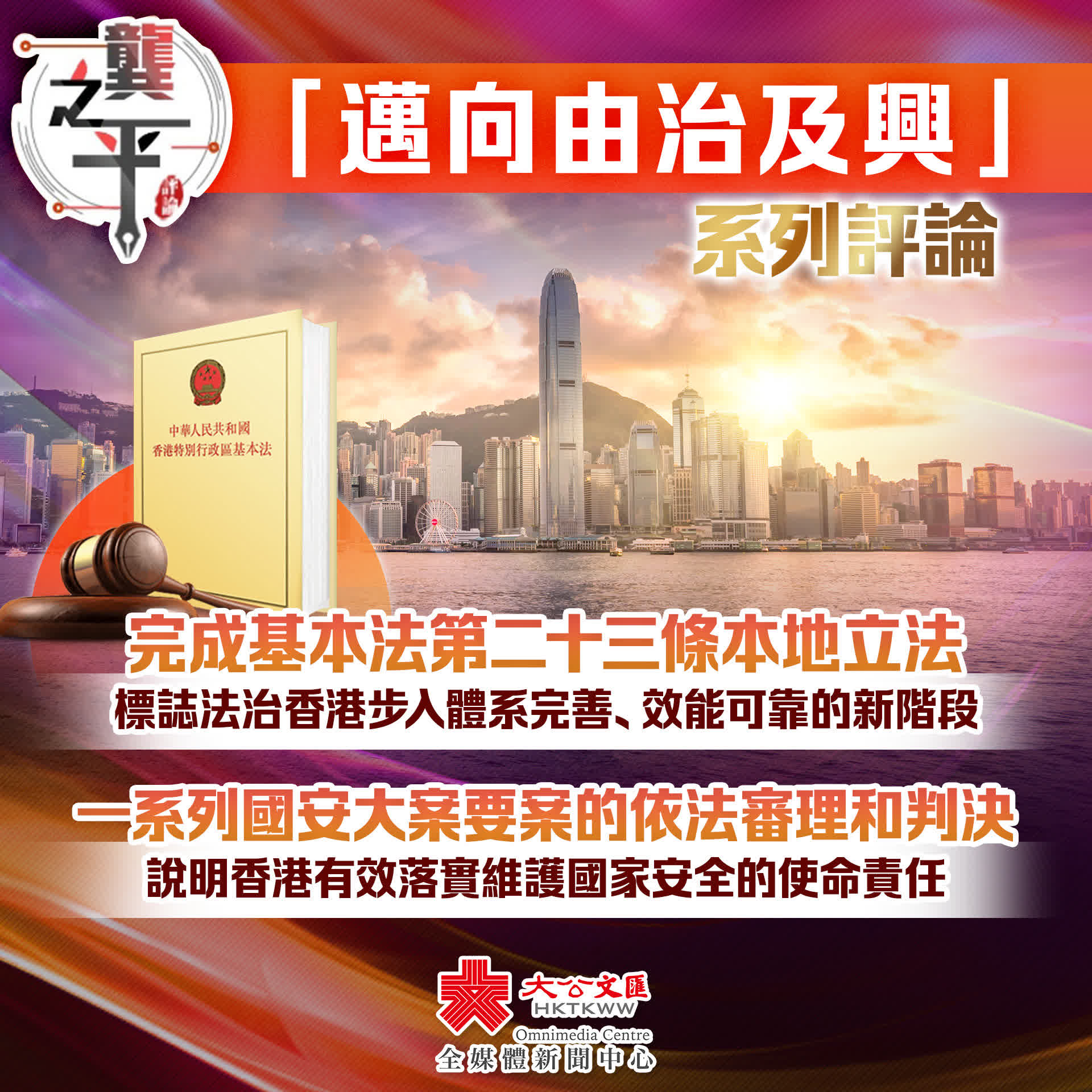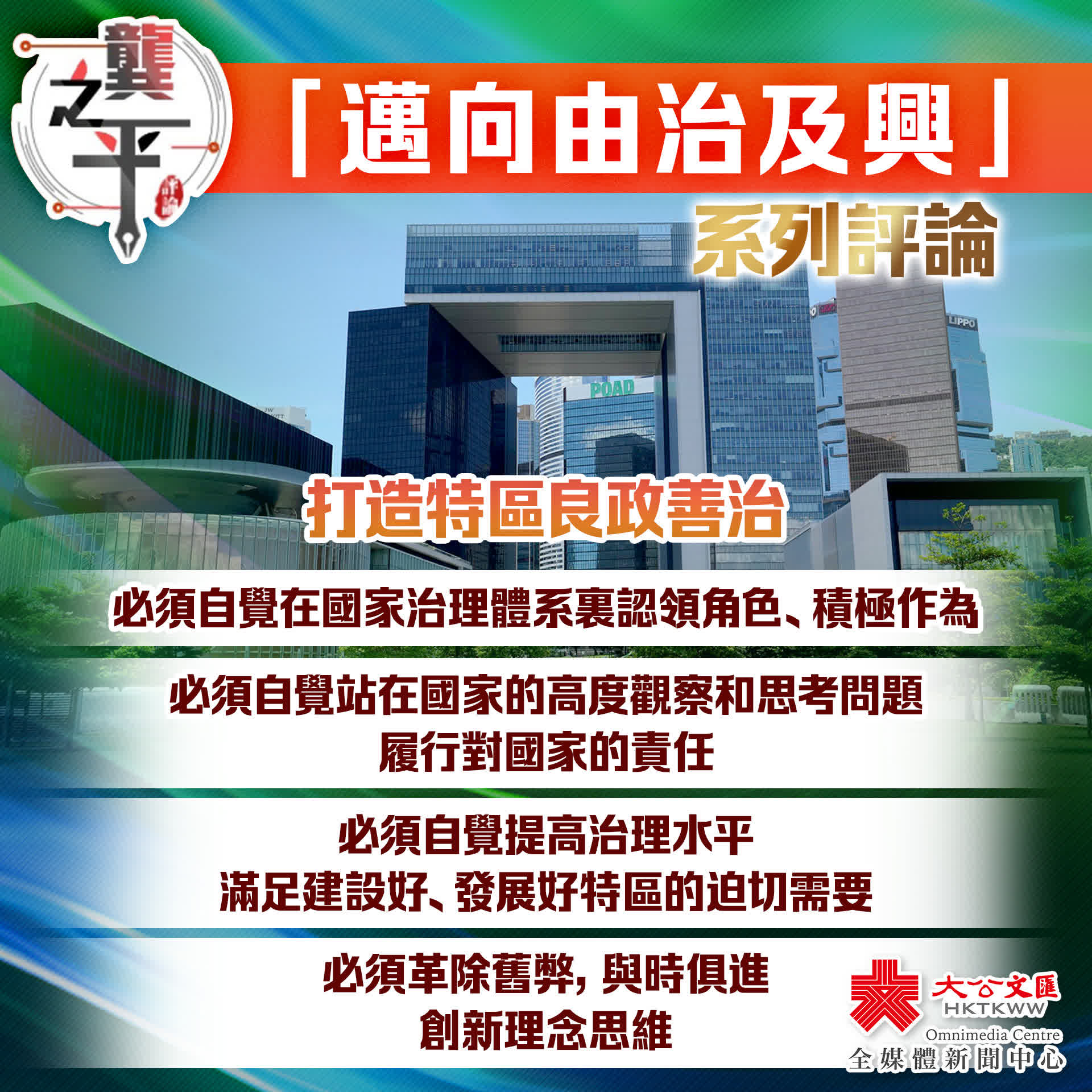系列評論分為發展、國安、治理、民生、國際化五篇文章,現已刊發完畢,大公文匯全媒體製作了龔之平「邁向由治及興」系列評論的要點海報,快來多圖睇清!