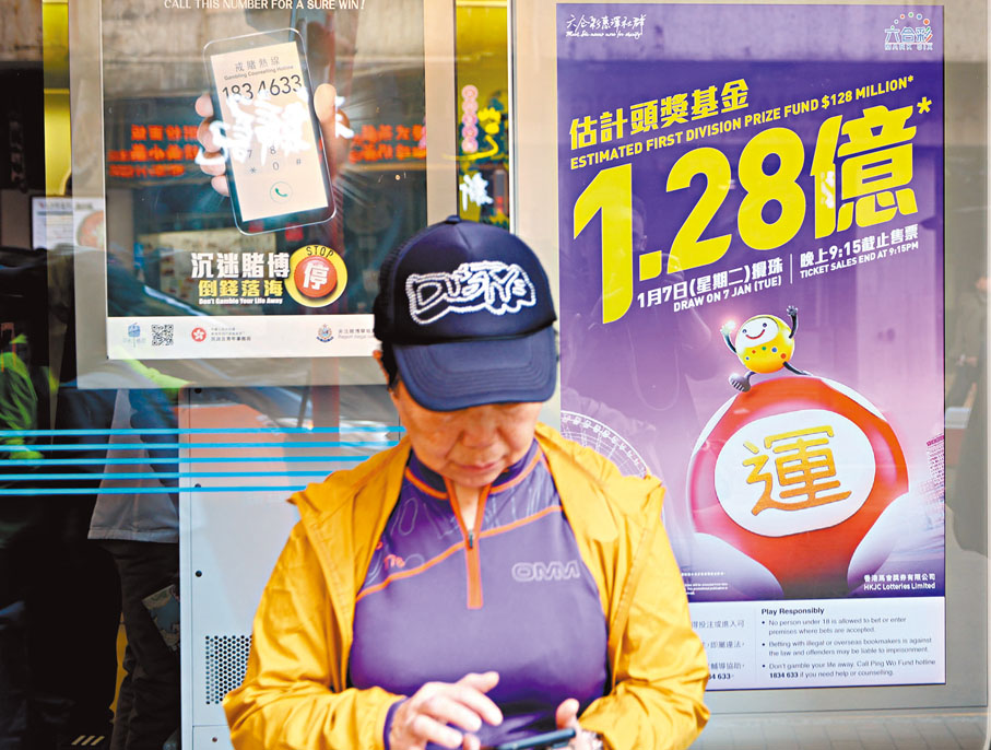 (香港文匯報記者 聶曉輝)由於上周四的億元新年金多寶未有幸運兒中頭獎,逾1.02億元多寶累積至今晚的六合彩攪珠內,馬會預計頭獎基金達1.28億元,令全城掀起一股博彩熱。連日來,市民和旅客紛紛到投注站購買幸運彩票,期望踏入新一年即可發大財。有最幸運投注站之稱的中環士丹利街投注站更長期擠得水洩不通,人龍排至門外街尾。這期令全城瘋狂的攪珠,截至昨日晚上10時半已吸引逾1.47億元投注額。