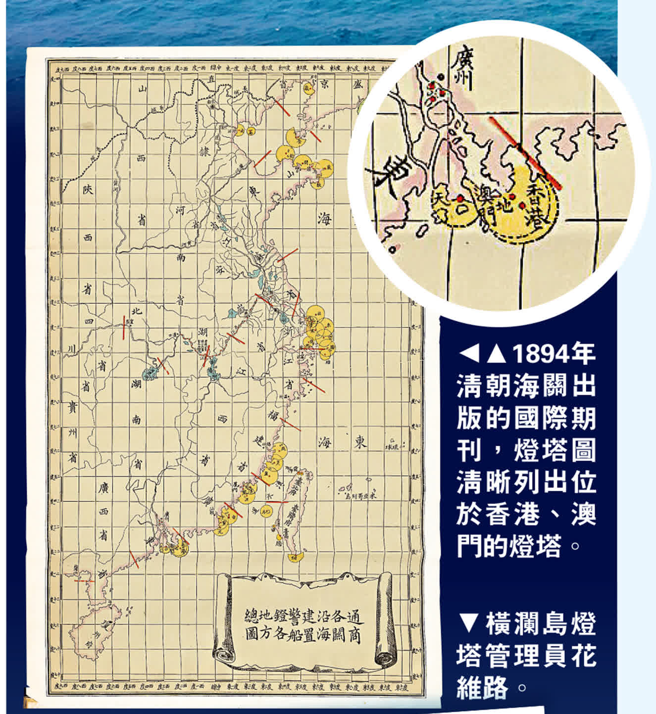 「是一脈相連,當年興建燈塔的總工程師,不只局限在香港起燈塔,而是以整個中國布局,從港口布置燈塔位置,建立燈塔網絡」。王瑋樂展示一幅1894年清朝海關出版的國際期刊的燈塔圖,王在該幅猶如藏寶圖的海事圖上點出香港、澳門的位置,「從這幅圖看到,橫瀾島燈塔沒有離開過(中國燈塔網絡),根本屬於中國境內,而且必然是燈塔網內最重要的一部分」。他講解沿中國海岸線的黃色標記便是燈塔。燈塔是導航商船入境以進行貿易,而當時蘇彞士運河開通,香港與西歐之間的航程縮短兩成半,時值中國推動洋務運動,對外國原材料、設備和商品的需求大增,商船往來香港、中國頻繁,所以整個海岸線上建立多座燈塔。