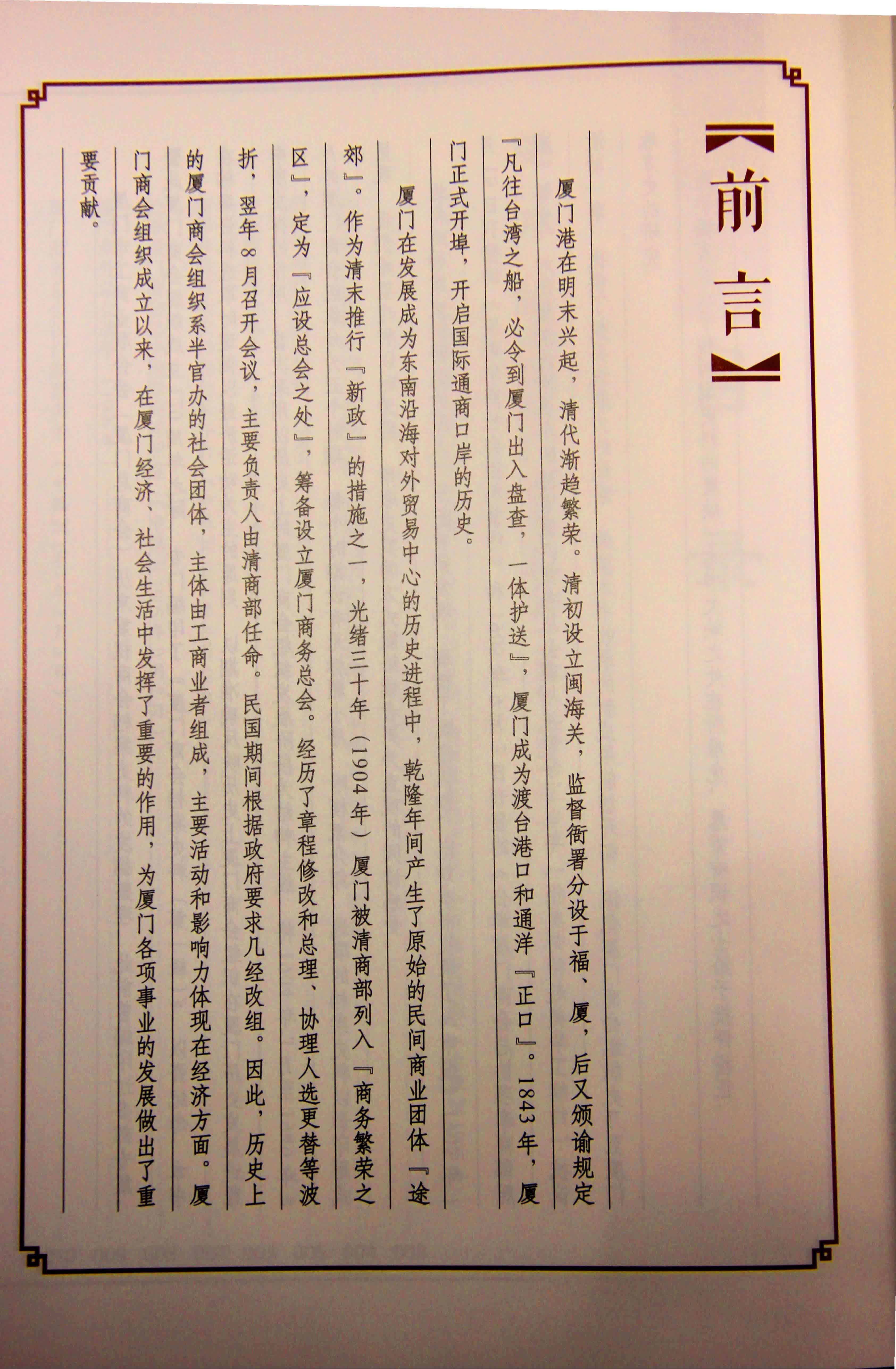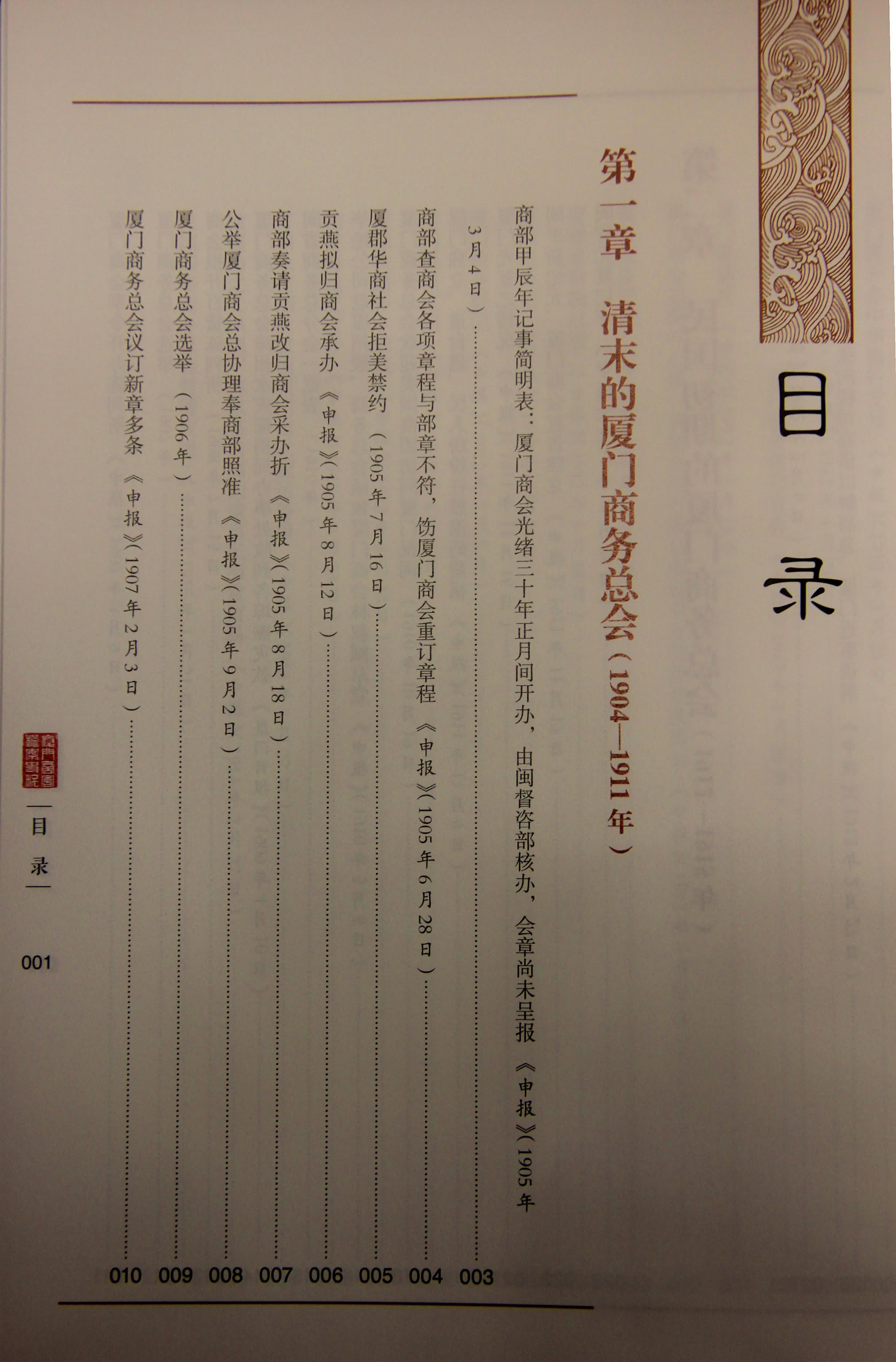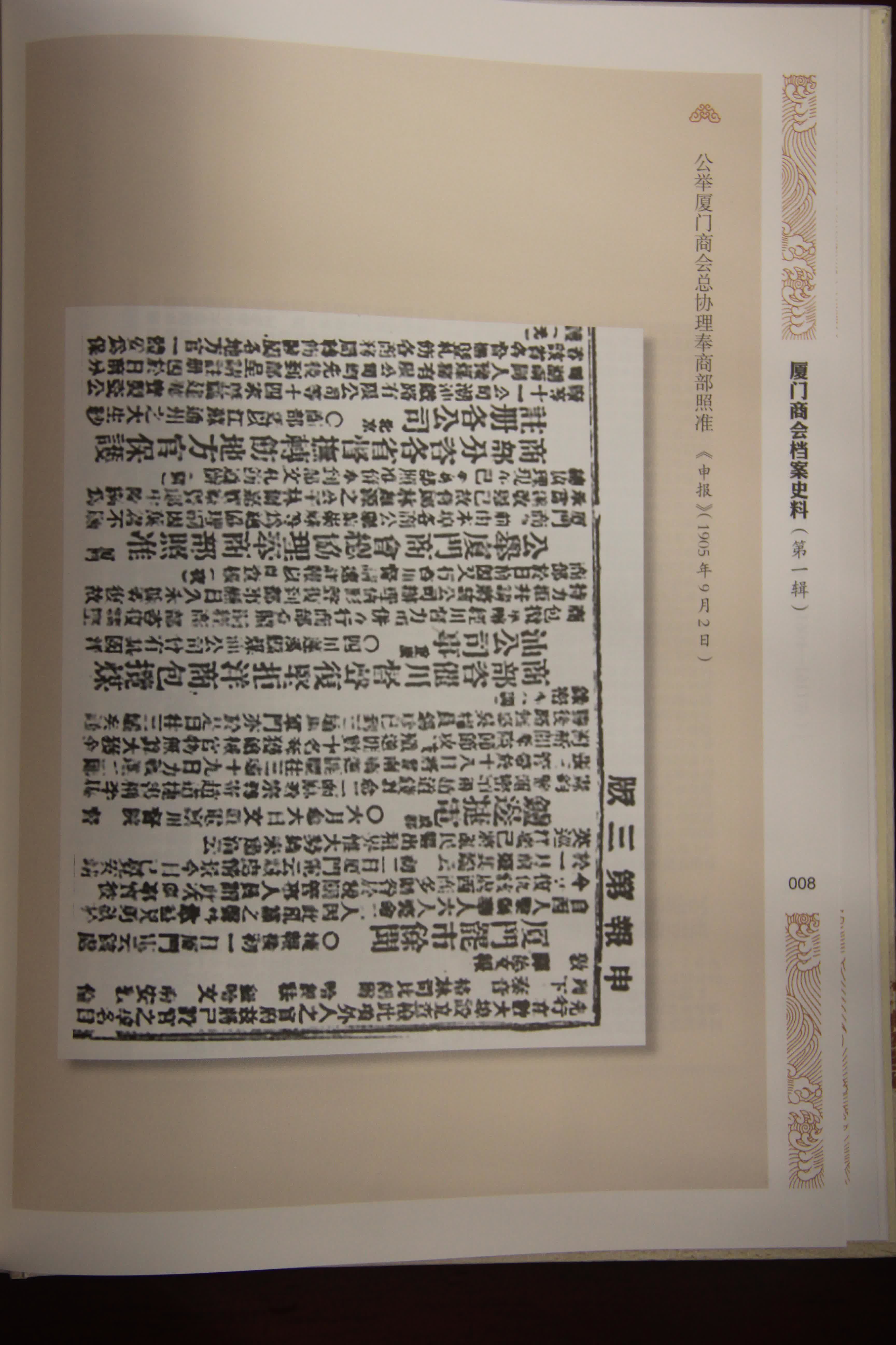 近年,隨着檔案史料研究的深入,不斷有新的發現,刷新了既往的認知,如書中收錄了《申報》1905年7月16日刊登的《廈郡華商社會拒美禁約》和1905年9月2日刊登的《公舉廈門商會總協理奉商部照準》等史料,對於釐清傳聞多年的清末廈門商務總會參與並領導了當年「拒美苛待赴美華工續約」抗議活動一事,提供了極具說服力的線索。書中對廈門商會組織的歷史發展過程做了重新的梳理,更系統地呈現了廈門商會組織120年的歷史進程和發展脈絡。這些新的研究成果對於開拓、深化廈門商會組織乃至廈門地方史的研究將起到一定的作用。
