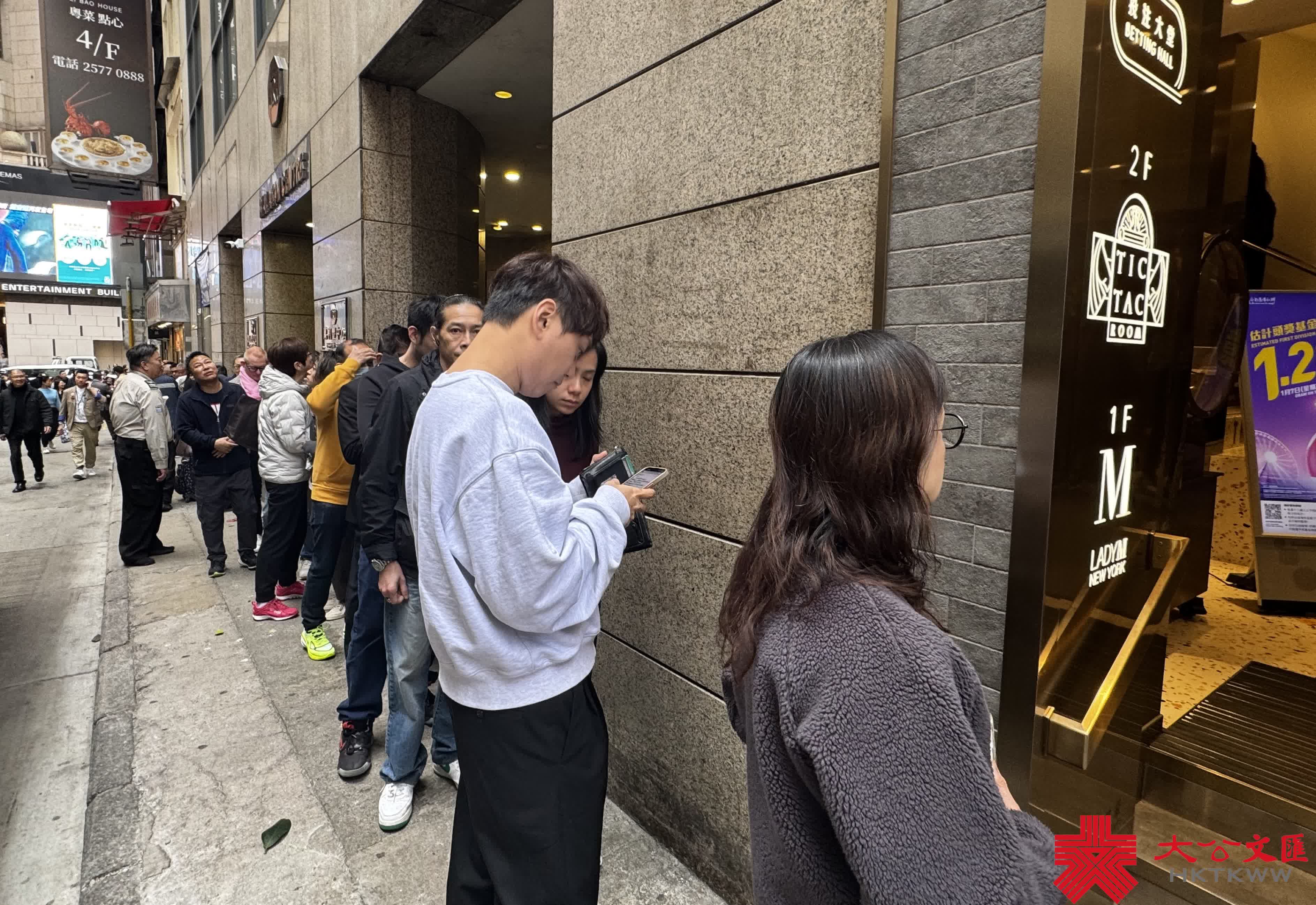 (大公文匯全媒體 記者 周傾芫)隨着新年首次六合彩大獎的獎金累積至1.28億,吸引了眾多市民和外地遊客的熱情參與。今日(7日)是開獎日,不少市民抓緊最後機會下注。大公文匯全媒體記者在熱門的中環士丹利街投注站現場,觀察到長龍已經排滿了士丹利街,工作人員介紹這幾天都是如此,在高峰時期,連威靈頓街也擠滿了人潮。一個鏡頭下甚至無法完全捕捉到壯觀的長龍景象。