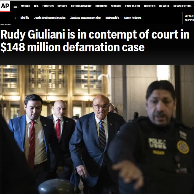 據報道,法官表示,朱利安尼故意不遵守判決要求,並指責他「拖延時間」。美聯社稱,在日前的聽證會上,朱利安尼承認,他有時沒有交出案件中要求的所有內容,因為他認為這些要求過於廣泛且不適當。他還稱,因多起法律案件要求他提供事實信息,他有時難以交出相關信息。