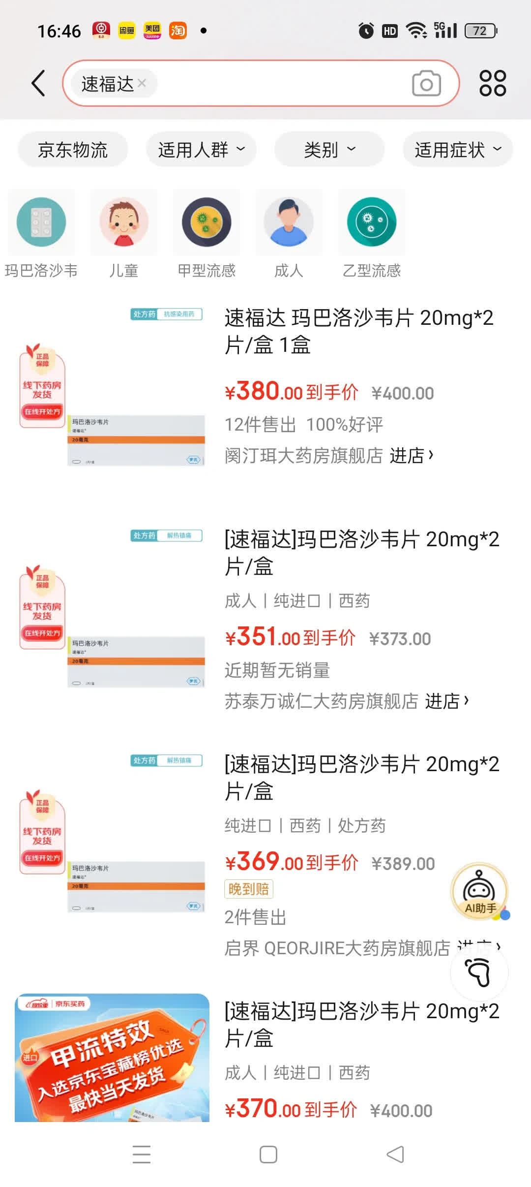 據悉,瑪巴洛沙韋是純進口藥物,價格相對較高,醫保談判後的醫保支付價為222.36元/盒,單片售價超100元。電商平台上,20mg*2片規格的瑪巴洛沙韋(速福達)單盒價格為230元,而線下藥店的價格普遍漲高,定價在230-260元之間,更有藥店定價高至300元。