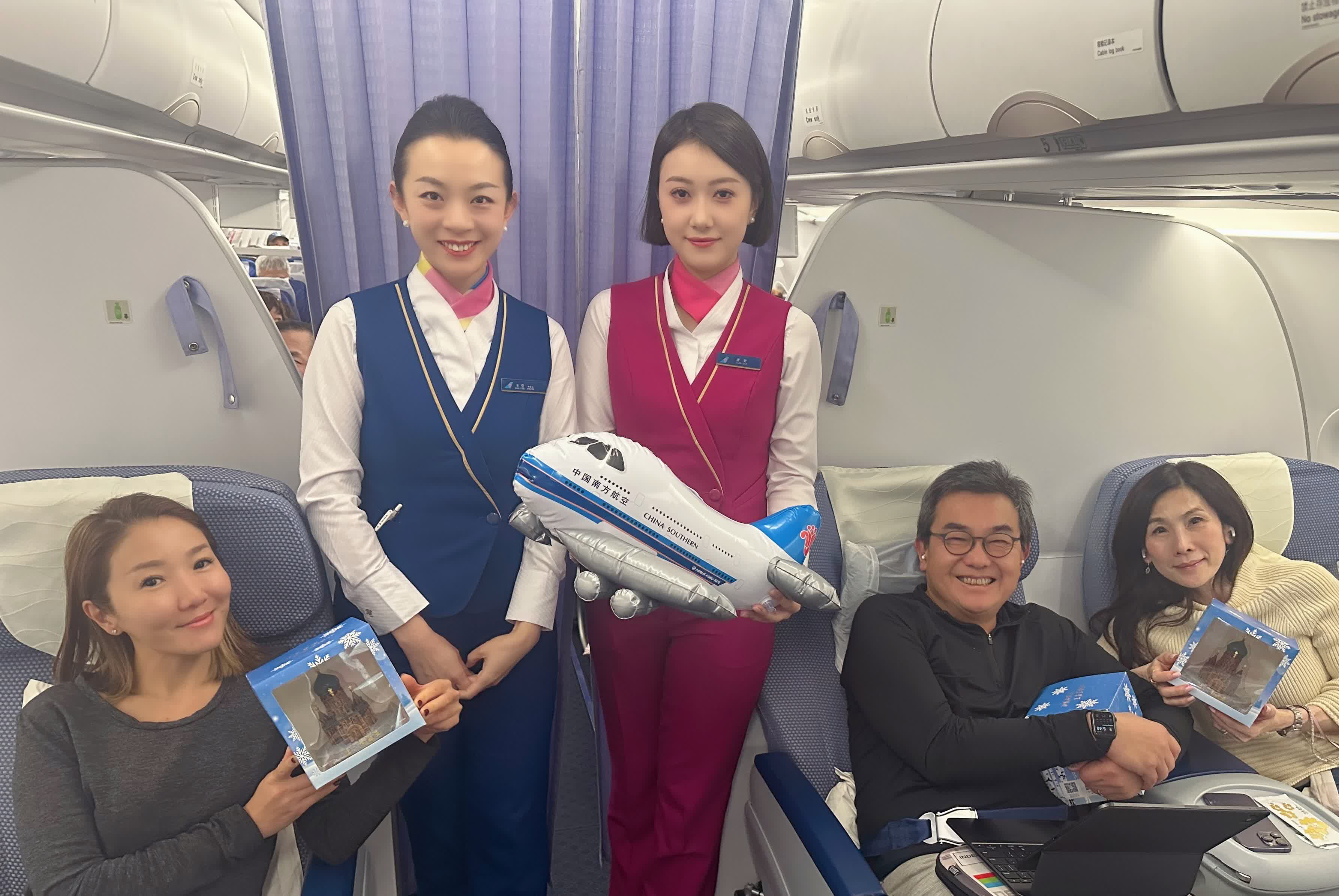 據南航黑龍江分公司客艙部經理、本次航班乘務長王瑩介紹,哈爾濱冰雪節開幕日這個航班上旅客大部分是來自香港、澳門等粵港澳大灣區的旅客,既有團隊也有自由行和商務行旅客,達到162人,航班基本處於滿座狀態。當次主題航班活動也是進入新年以來,分公司開展冰雪文旅系列主題航班中的一班。從客艙的互動中,乘務組也充分感受到來自香港、澳門客人對哈爾濱冰雪的期待和熱情。為了做好推廣哈爾濱冰雪文旅的活動,每一次乘務組都提前準備豐富內容,趣味問答、美食鑒賞、旅遊攻略、戶外活動注意事項、贈送文旅產品等都成為活動的選項。