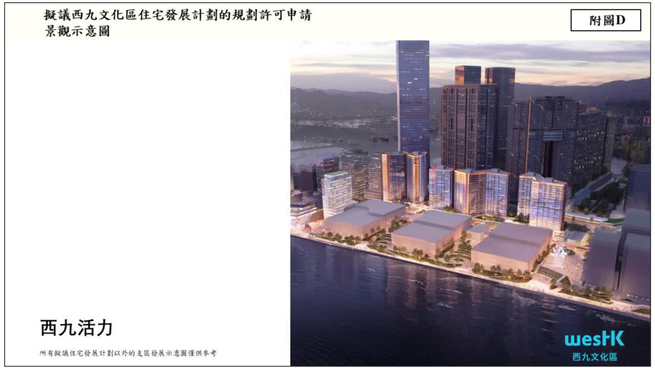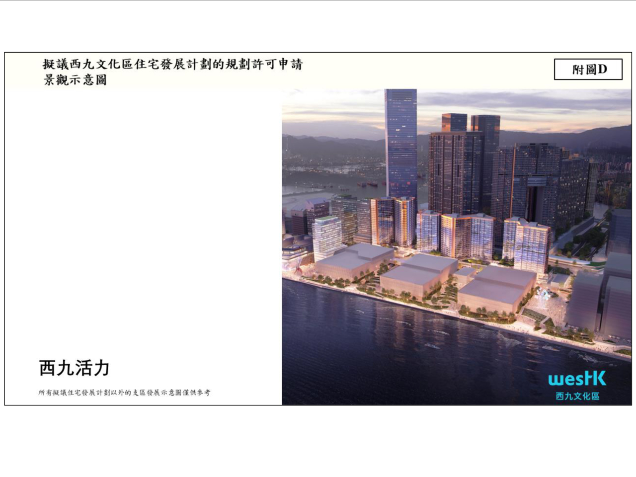 大公文匯全媒體報道,西九文化區管理局建議在柯士甸道西以南及《西九發展圖則》規劃的林蔭大道以北,興建7幢於3層平台上的住宅大樓,單位總數不多於1995伙,總樓面面積不多於10.8萬平方米。