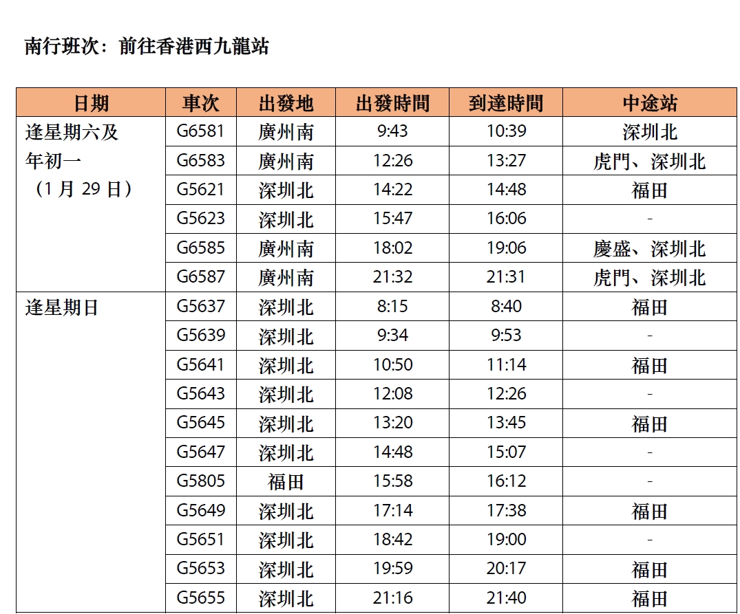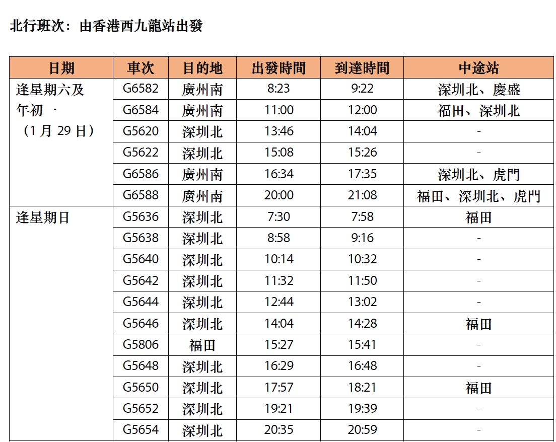 註:高鐵「香港熊貓專列」班次或會因應車務調動而有所調整,不作另行通知。
