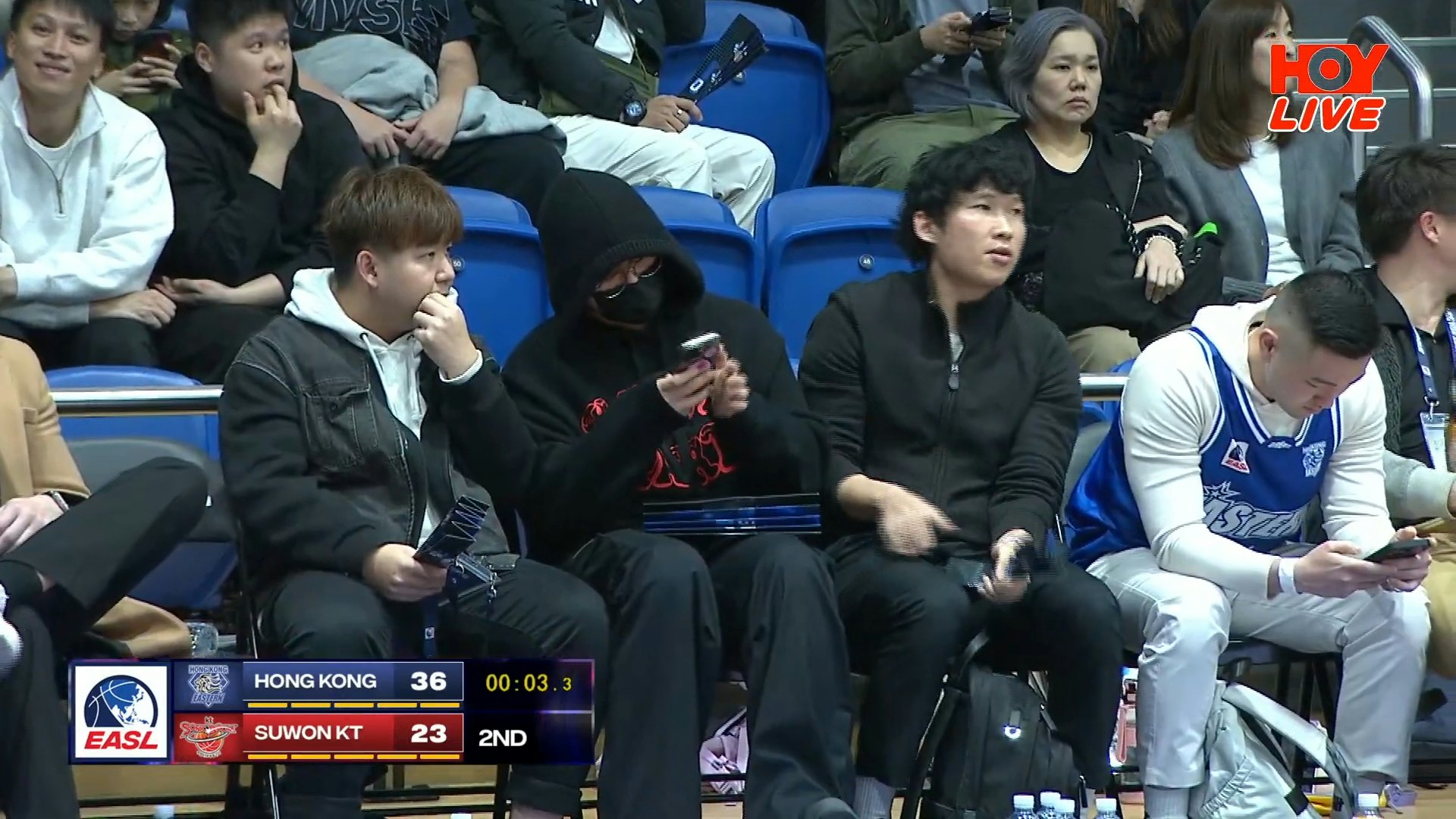 (大公文匯全媒體 特約記者 陳惠芳)MIRROR組員姜濤一向熱愛籃球運動,平日他不時被捕獲在維園打波,即使被網民發現也不以為然。不過,他1月7日現身HOY TV節目上,原來他到灣仔修頓球場觀看《東亞超級籃球聯賽》,在「香港東方」對「水原音速彈」賽事中,姜濤就與友人現身觀眾席頭排。