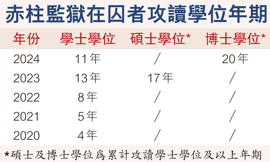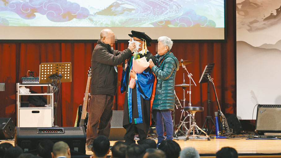 (香港文匯報 記者 姜嘉軒)曾經犯下嚴重過錯,在承擔悔意及罪責的同時堅持進修,為的是要證明自己仍有希望不想放棄,也是為了要在領證書的一刻,沒有隔閡地與至親相擁—在囚者曲折艱辛的學習路,就是這樣的一回事。經歷24年鐵窗苦讀,赤柱監獄在囚的阿俊(化名),昨日正式獲香港都會大學頒授教育博士學位,成為香港首位獲本地大學頒授博士學位的在囚者。他在證書頒發典禮與一眾追求知識的在囚者分享說:「I can, so can you!」(我可以,你們也可以)他直言,自己不斷學習的一大動力,是希望每年都能出席證書頒發典禮,給雙親一個深情擁抱。除了如願與父母相擁,阿俊還向他們承諾:「雖然遲了很多年,但我希望讓你們知道,我生性、我懂事,你們可以放心,不用再擔心了。」