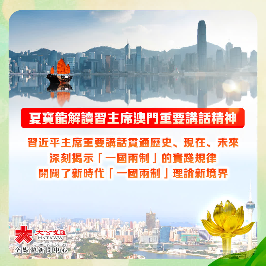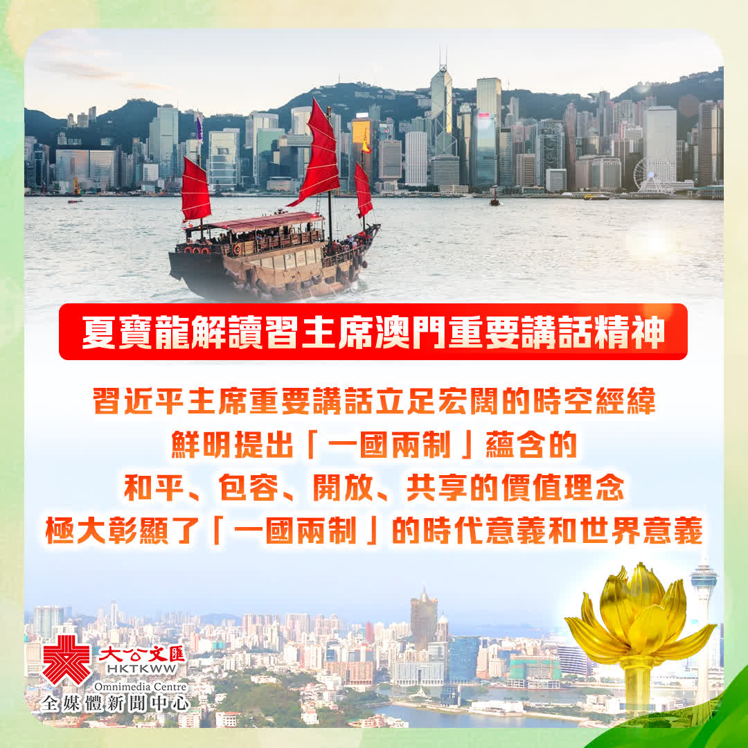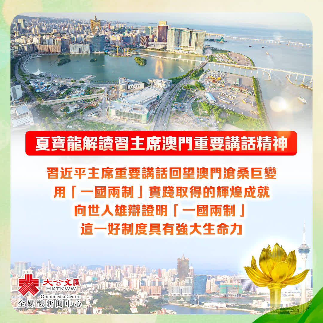 一、習近平主席重要講話回望澳門滄桑巨變,用「一國兩制」實踐取得的輝煌成就,向世人雄辯證明「一國兩制」這一好制度具有強大生命力