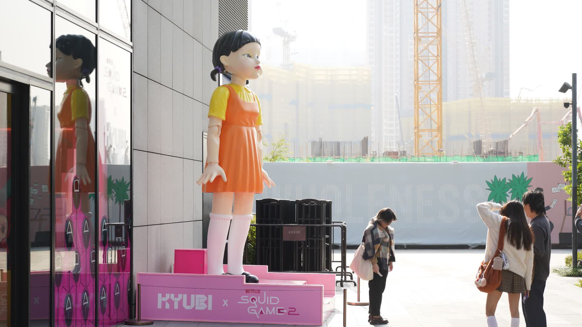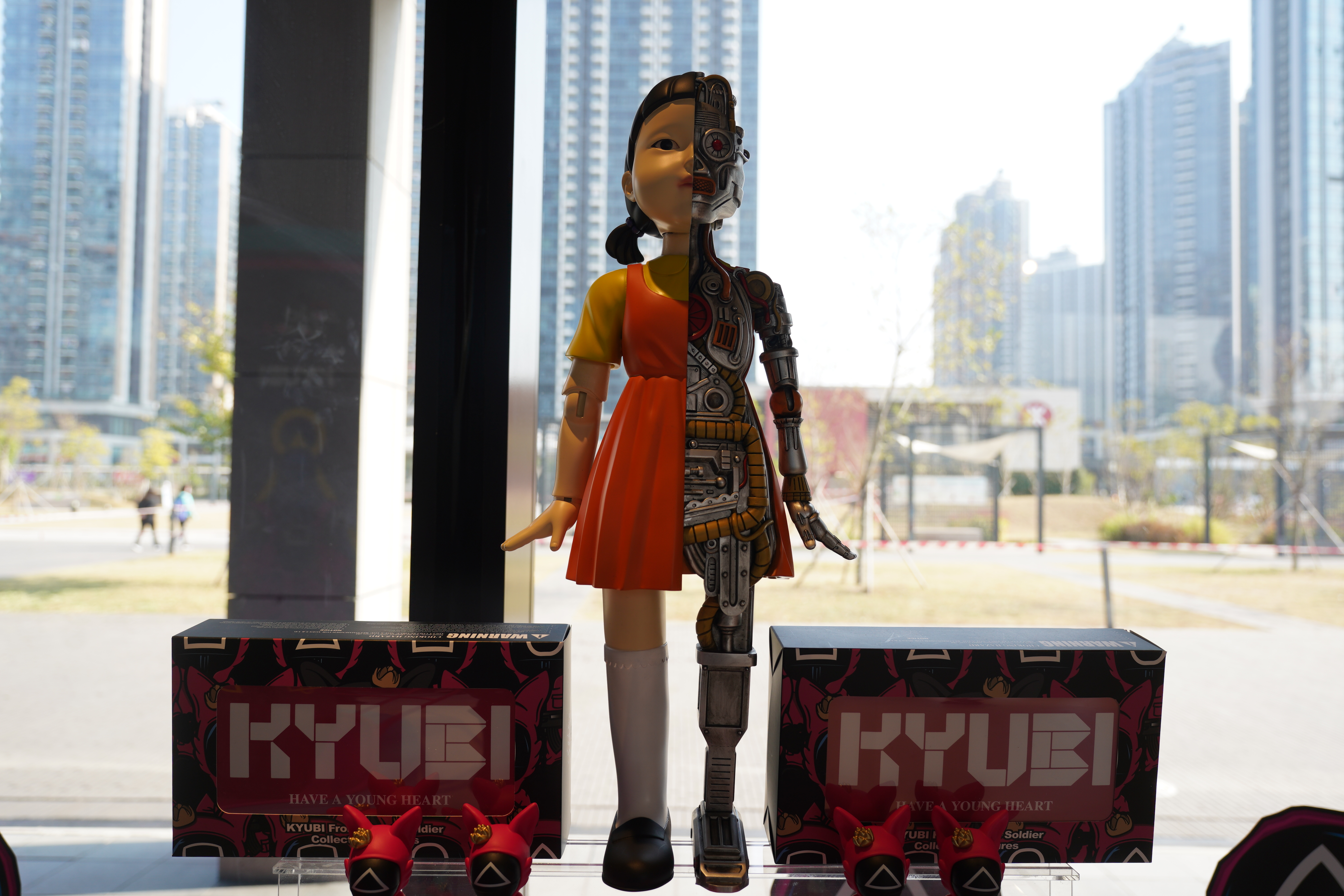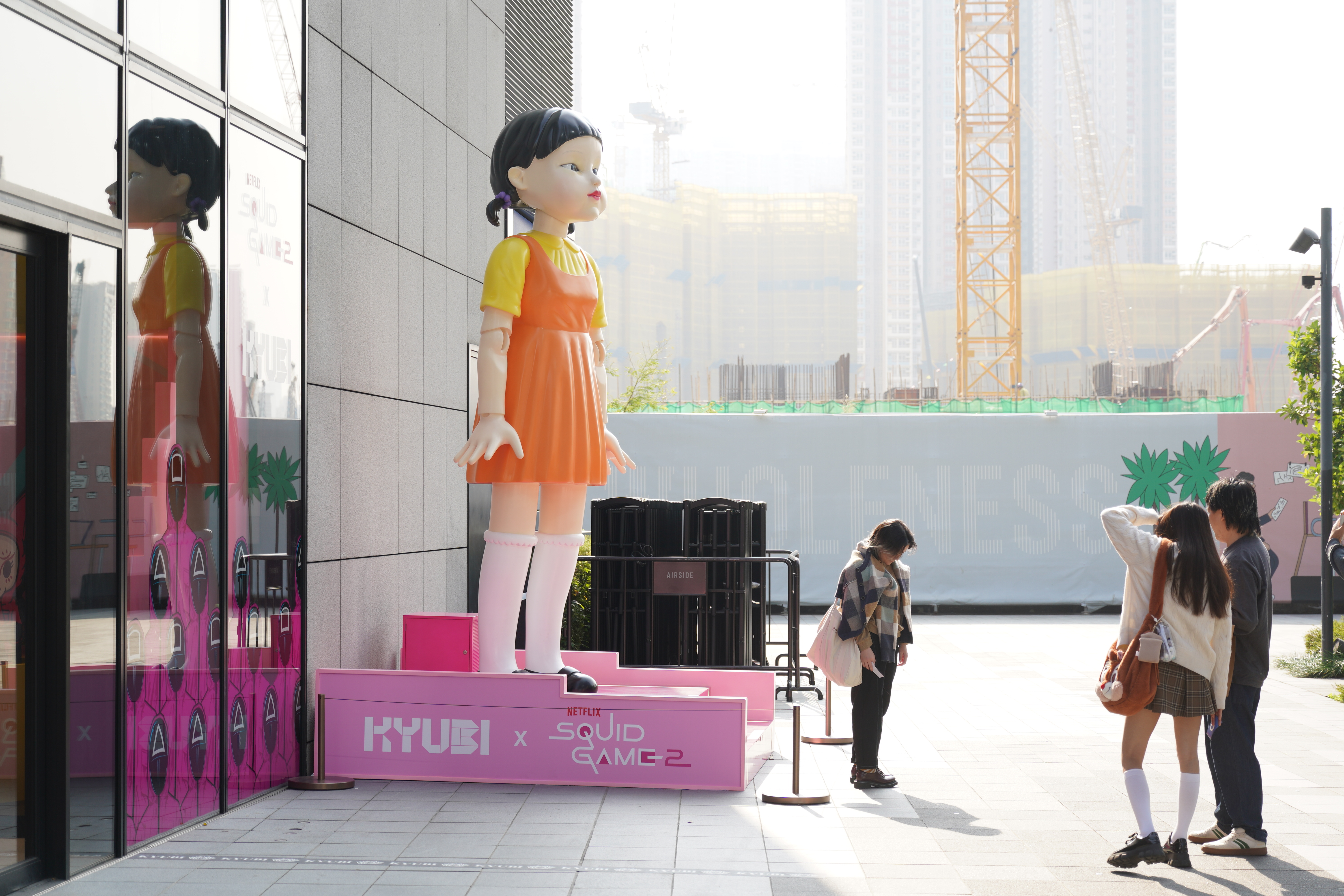 大公文匯全媒體報道,風靡全球的NETFLIX原創劇《魷魚遊戲》(SQUID GAME)與本地時尚潮流品牌KYUBI攜手打造《KYUBI X SQUID GAME 2》主題展覽暨期間限定店,創造童趣反叛的暗黑系遊樂場,明日(1月10日)登陸啟德AIRSIDE,不僅有4米高英熙娃娃Young-Hee、Front Man立體面具、豬仔錢罌等標誌性裝置等你打卡,還有一系列創意限定產品!