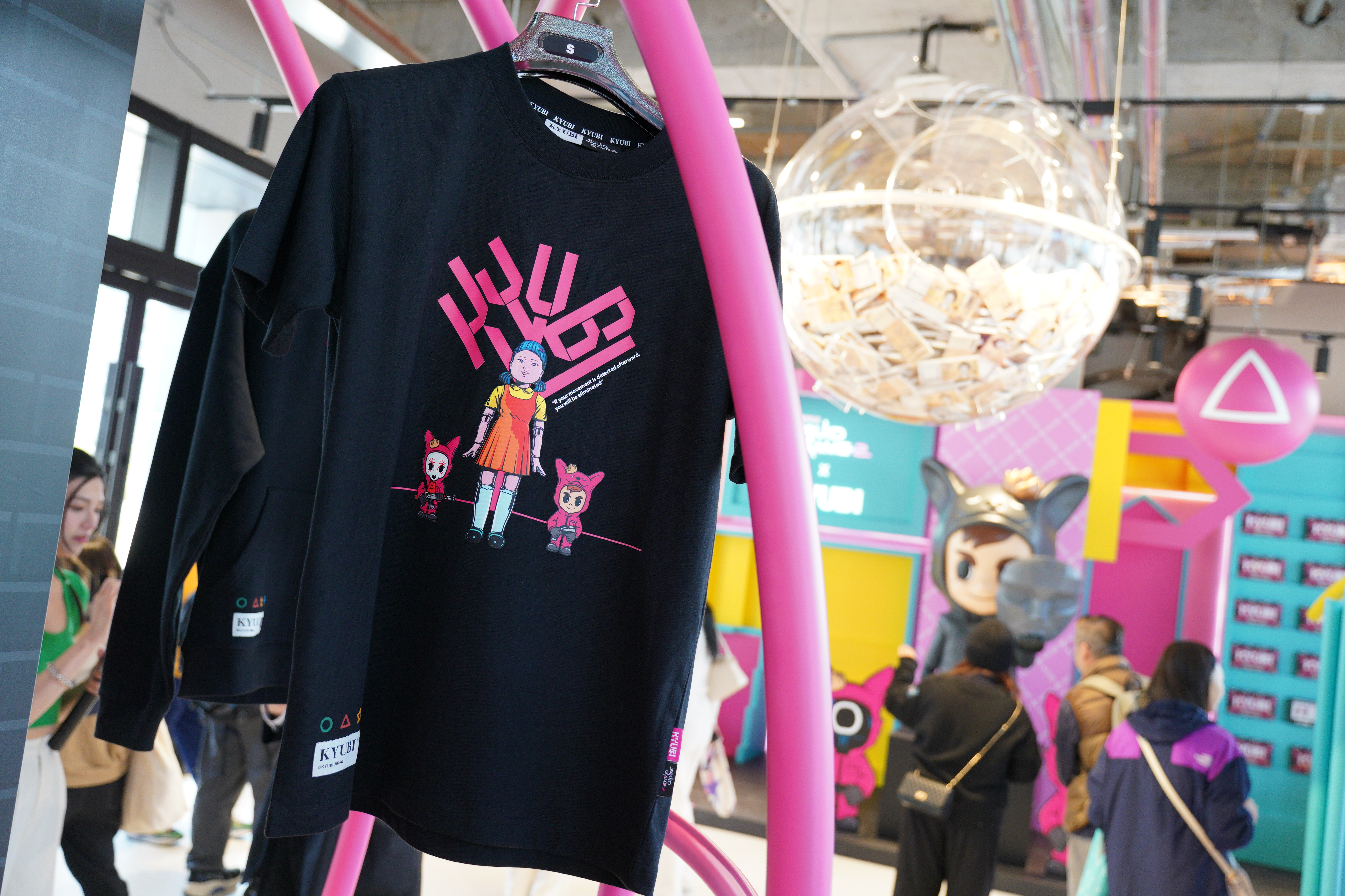 是次《KYUBI X SQUID GAME 2》PopupStore推出一系列創意設計產品,全部以限定數量發售。產品涵蓋多款時尚單品,包括英熙娃娃Young-Hee及負責人Front Man暗黑設計的T恤、獨家設計超稀有搪膠公仔組合等,粉絲絕對不容錯過!