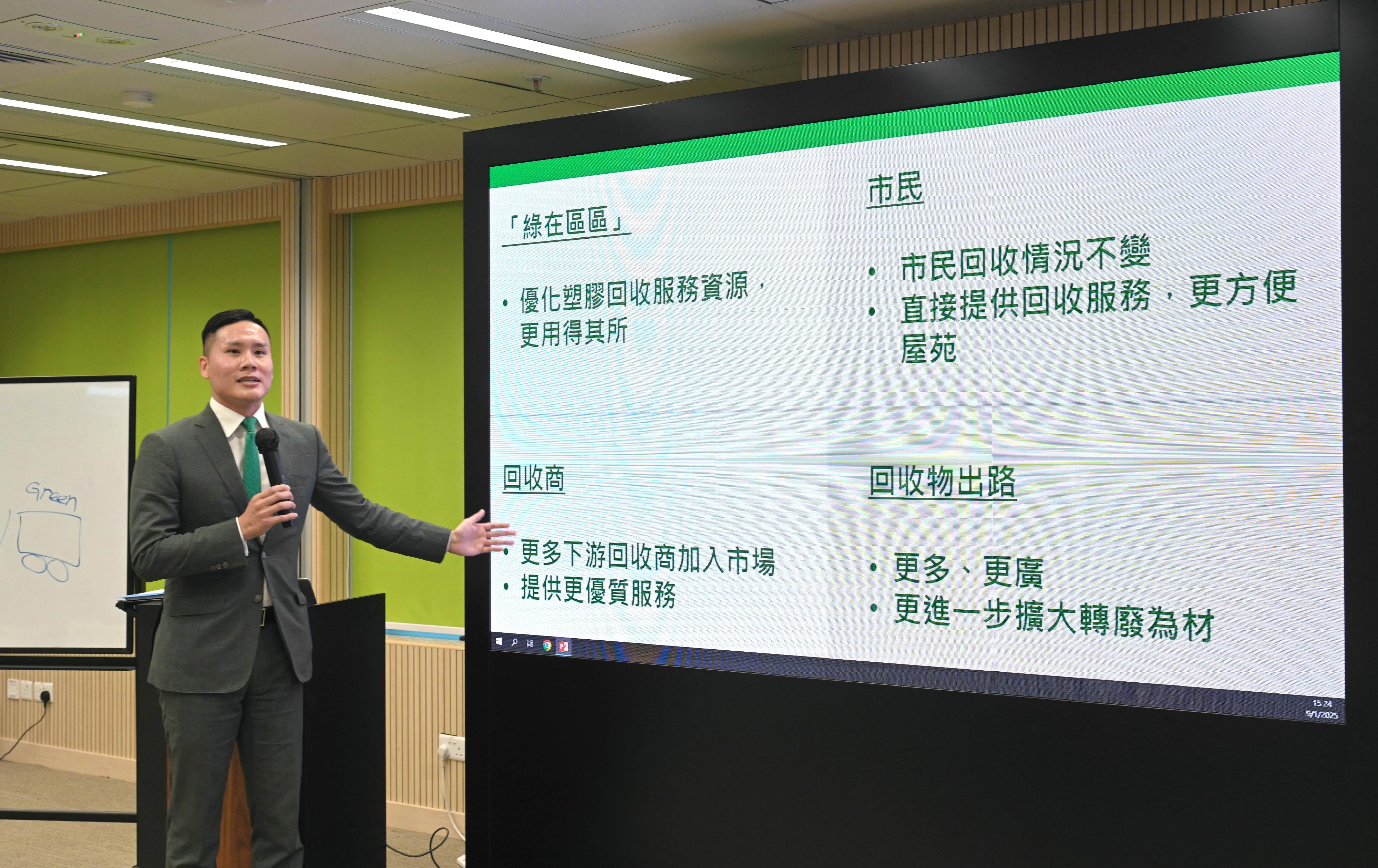發言人指,除了減省重疊的工作外,未來「綠在區區」營運團體可以將收集到的塑膠交予任何市場上由環保署核准的回收商作處理,而不單是以往先導計劃指定的三個回收商,讓回收業界有一個開放的競爭市場,可以減低處理廢塑膠的收集及回收成本。