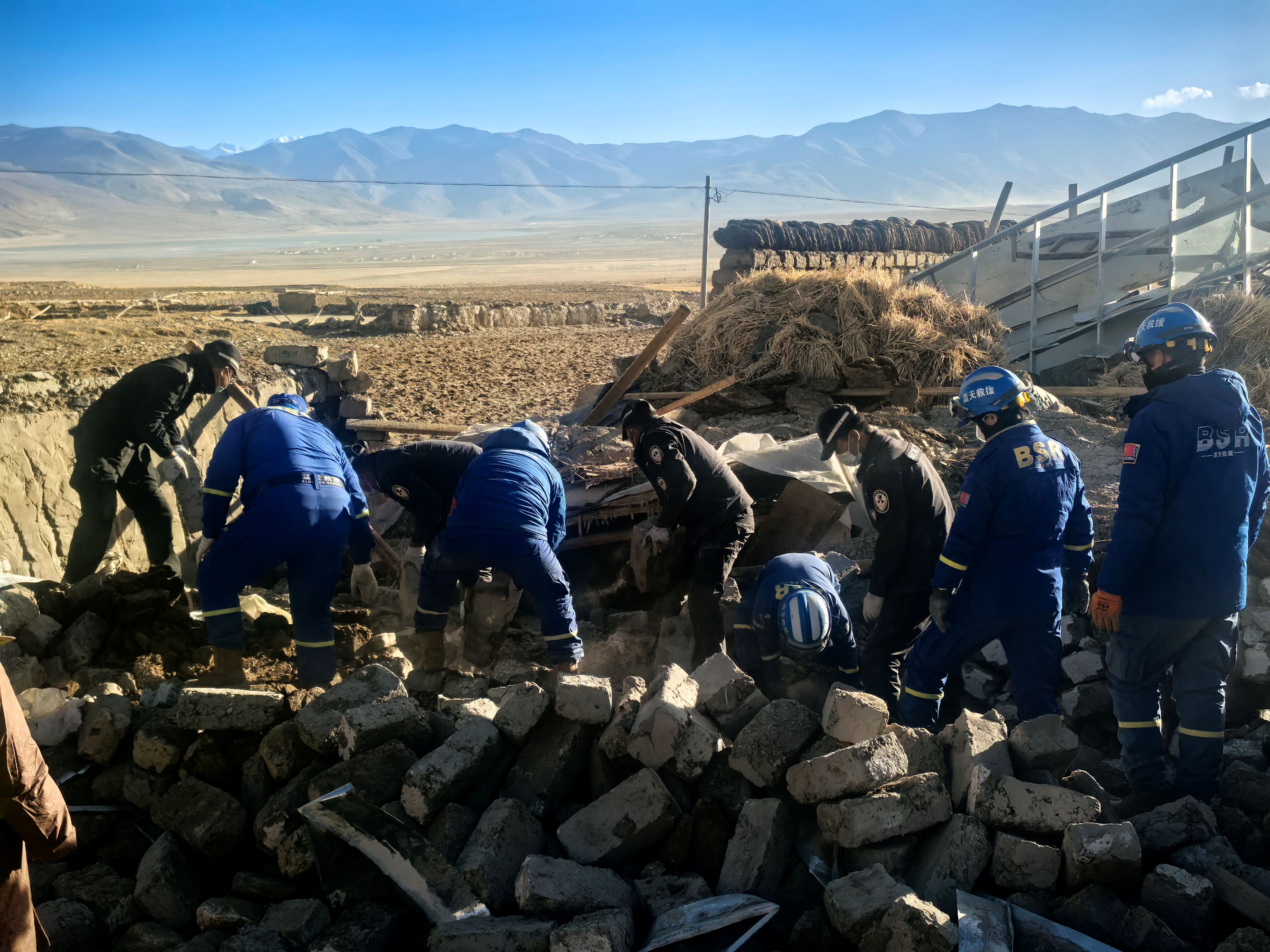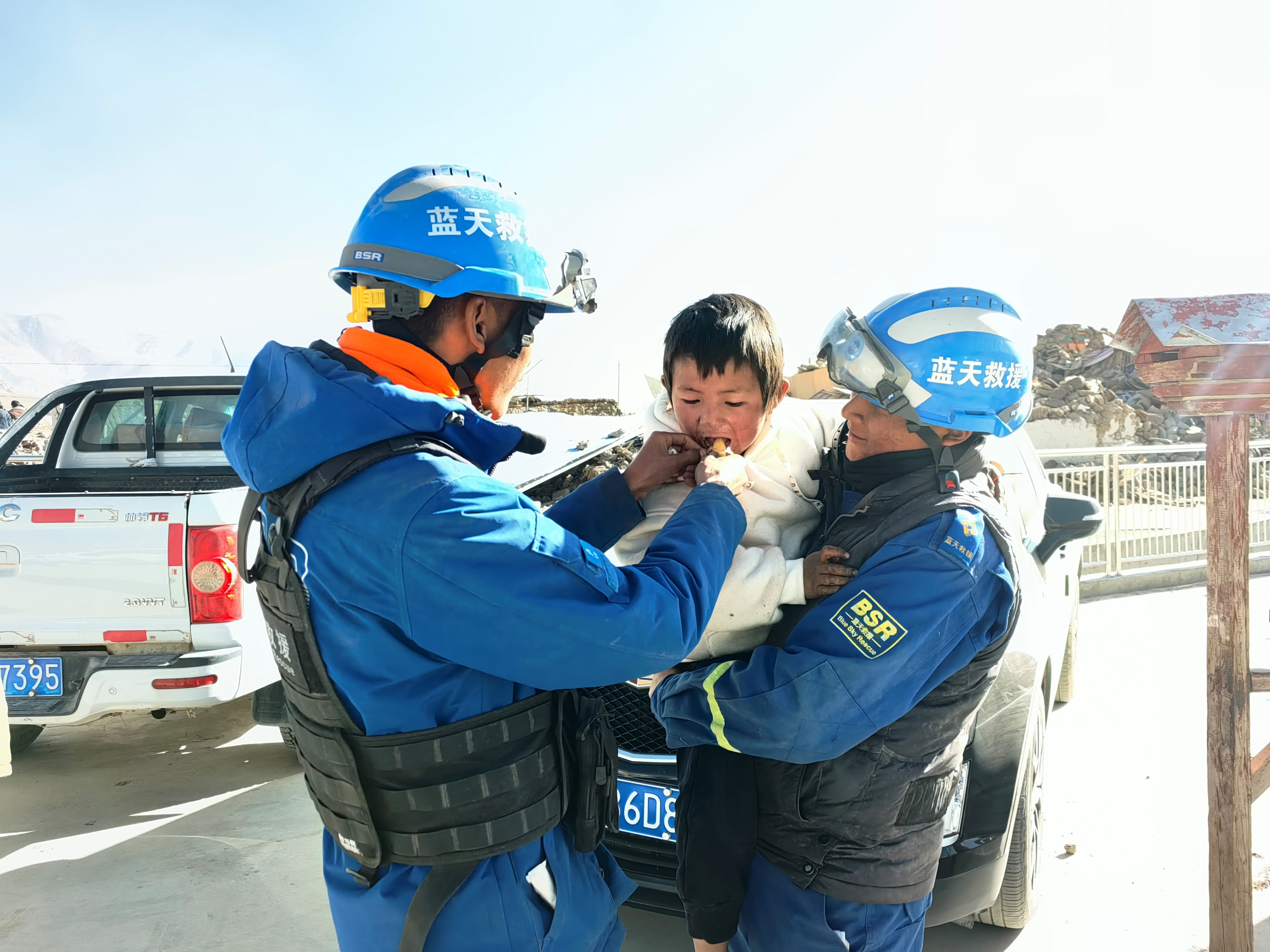西藏藍天救援隊首批18名隊員,已經在災區開展工作超過2天。9日凌晨,第二批17名隊員及隨行的11輛裝滿救援、安置物資的車輛,抵達定日縣長所鄉,立即投入工作。