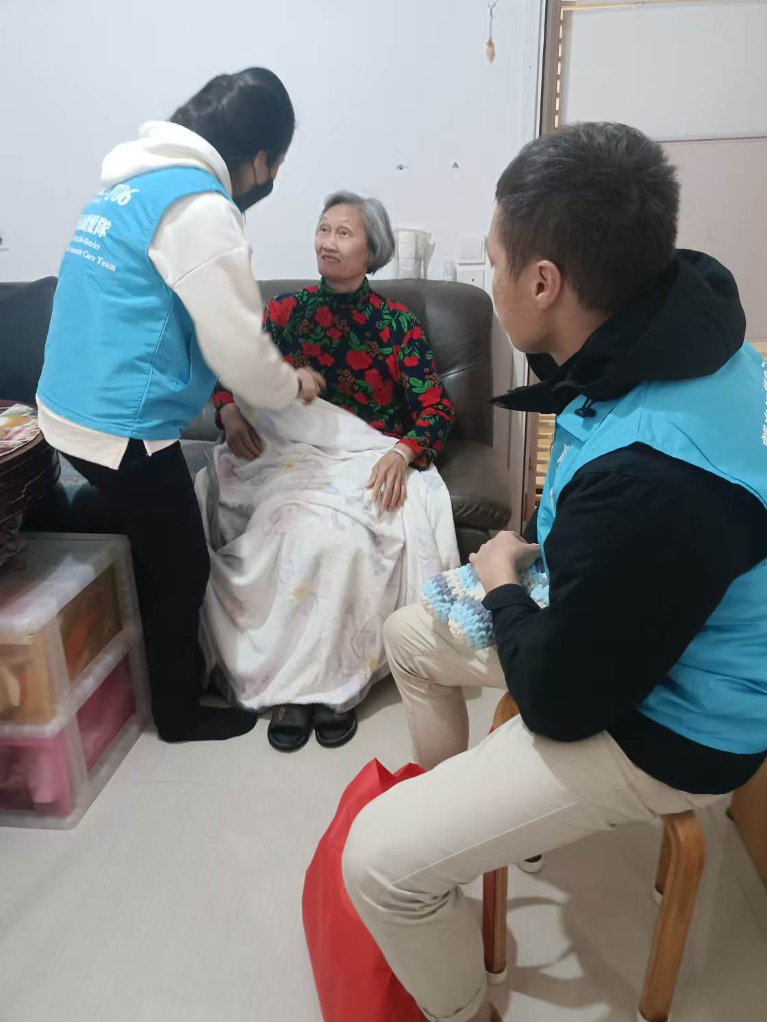 即便在離島等偏遠社區,關愛隊也是力求做到無微不至、事事關心。東涌北關愛隊副隊長葉培基透露,關愛隊留意到寒流襲港,近日馬不停蹄探訪區內長者戶,關心他們的近況,並且派發物資,叮囑長者注意添衣保暖。他憶述有獨居長者對關愛隊到訪感到窩心,尤其是收到保暖毛氈以及由義工親手織的毛公仔禮物,「見到服務對象開心,就是參與關愛隊服務的最大滿足感」。
