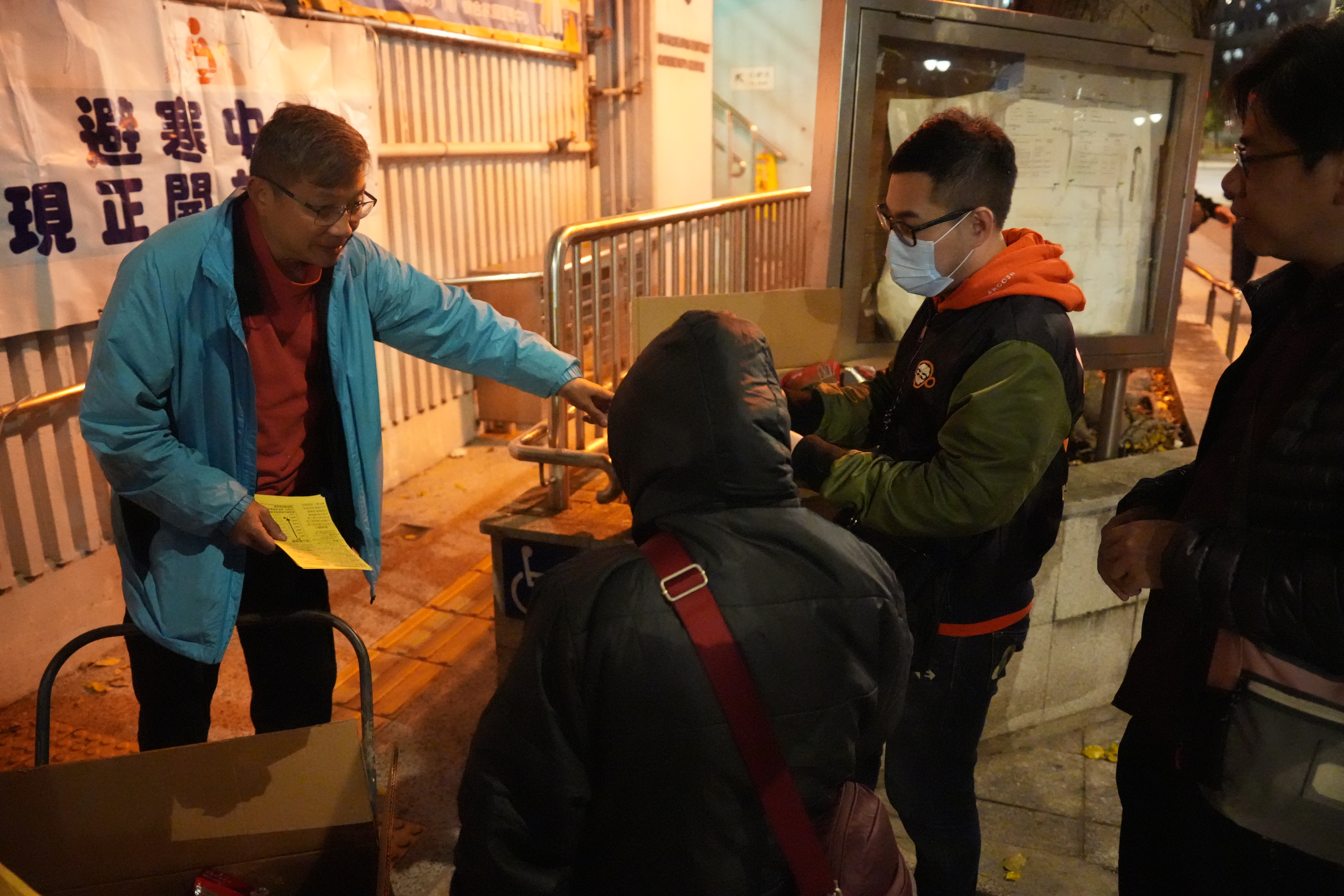 在嚴寒下謹守崗位的,不只有政府和關愛隊成員,還有一直以來默默服務露宿者的社福機構。社區組織協會幹事吳衛東今晚與團隊成員分別到訪多間避寒中心,當中包括深水埗區南昌社區中心和油尖旺區梁顯利油麻地社區中心,他們探訪入住者,並會按需派發冬衣等保暖物資。他形容,政府社區中心已經有很成熟的機制,提供杯麵和熱的食物。