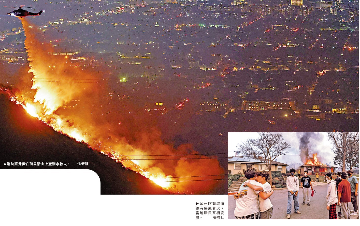 大公報綜合報道,美國加州南部洛杉磯地區山火肆虐,已造成至少5人死亡,超過1000棟建築被毀,逾13.7萬人被迫撤離,超過150萬戶斷電。由於山火發生地靠近荷里活,多位明星的豪宅被燒毀。大批當地居民緊急駕車撤離,形容看到的是「末日景象」,「宛如置身地獄」。專家稱,在強勁且乾燥的「聖塔安娜風」影響下,山火蔓延異常迅速,再加上洛杉磯消防及供水系統面臨水源不足、水壓過低等問題,預計火勢難以在短期內受控。