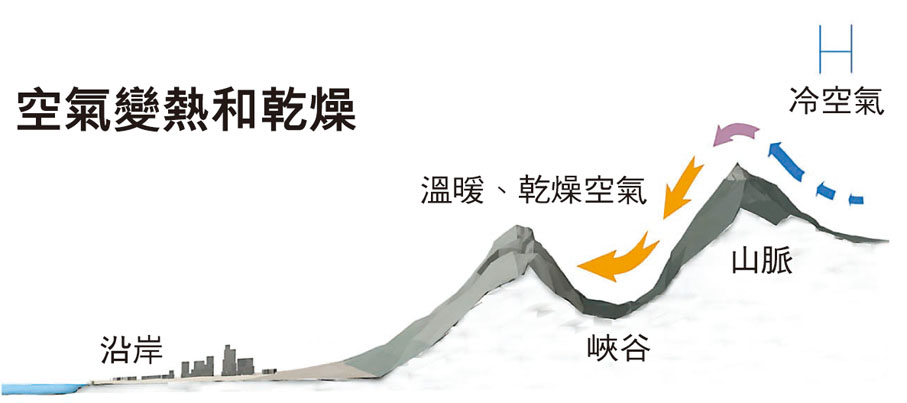 聖安娜焚風遇濕度下降 乾燥植被更易燃