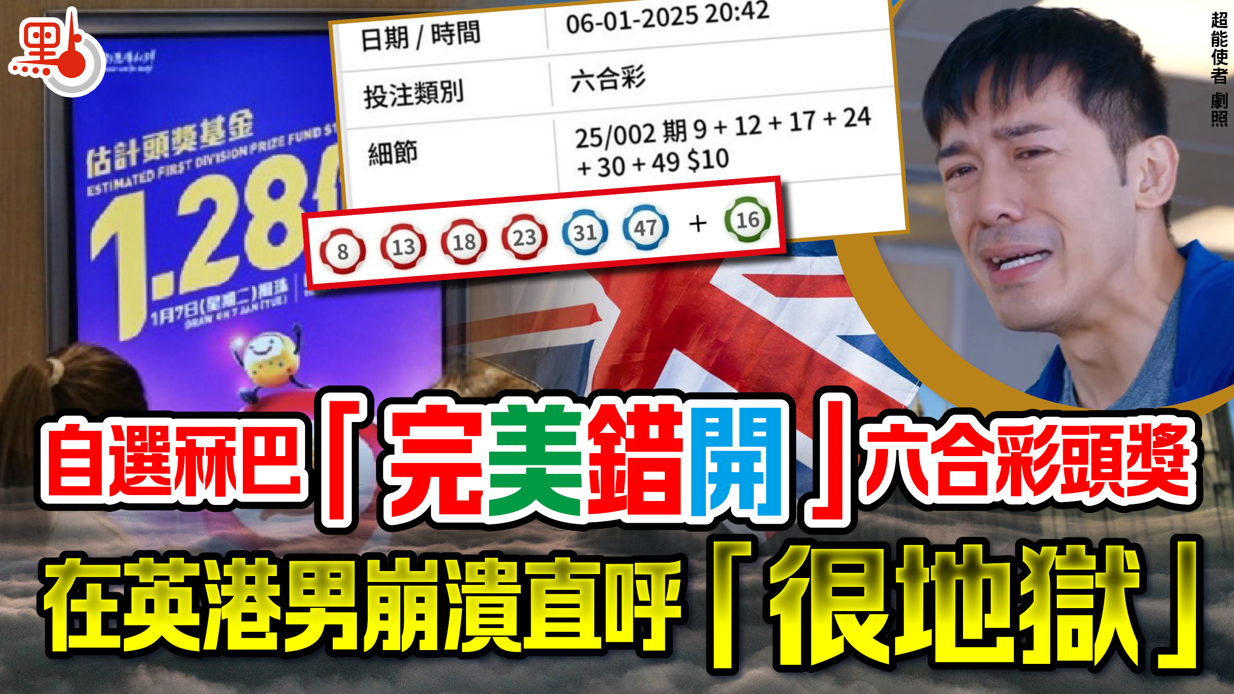 該名在英國生活的港男在社交平台threads發文表示,「昨日(7日)發生了一件很地獄的事」,指事緣當日是六合彩的開彩日子,由於獎金非常豐富,所以都叫家人買了一注碰碰運氣。從其上載的六合彩投注紀錄及攪珠結果可見,中獎號碼竟「完美錯開」。