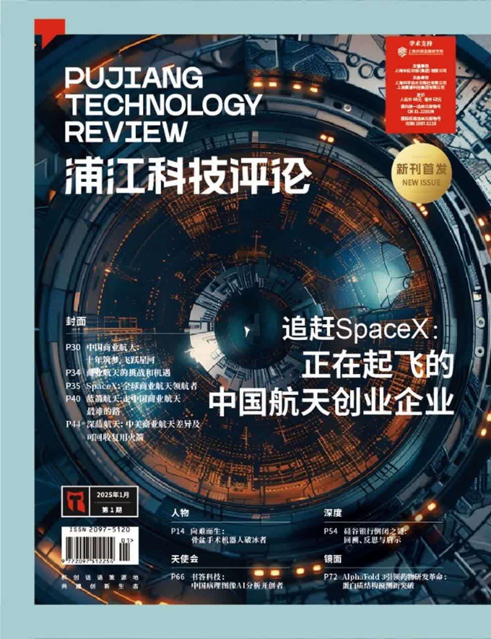 2025年1月,《浦江科技評論》新刊首發,該刊是上海科學技術出版社和黃浦科創集團聯合主辦,由上海科創金融研究院提供學術支持。在信息氾濫,噪聲冗雜的時代,《浦江科技評論》聚焦前沿科技及其商業化探索,立足中國,放眼世界,肩負着記錄和傳播全球尤其是中國科技成果轉化的最佳實踐、理論探索與政策實施的重要使命,為科技強國貢獻智慧與力量。《浦江科技評論》堅持以冷靜理性的態度,致力於成為具有全球影響力的科技商業化媒體。