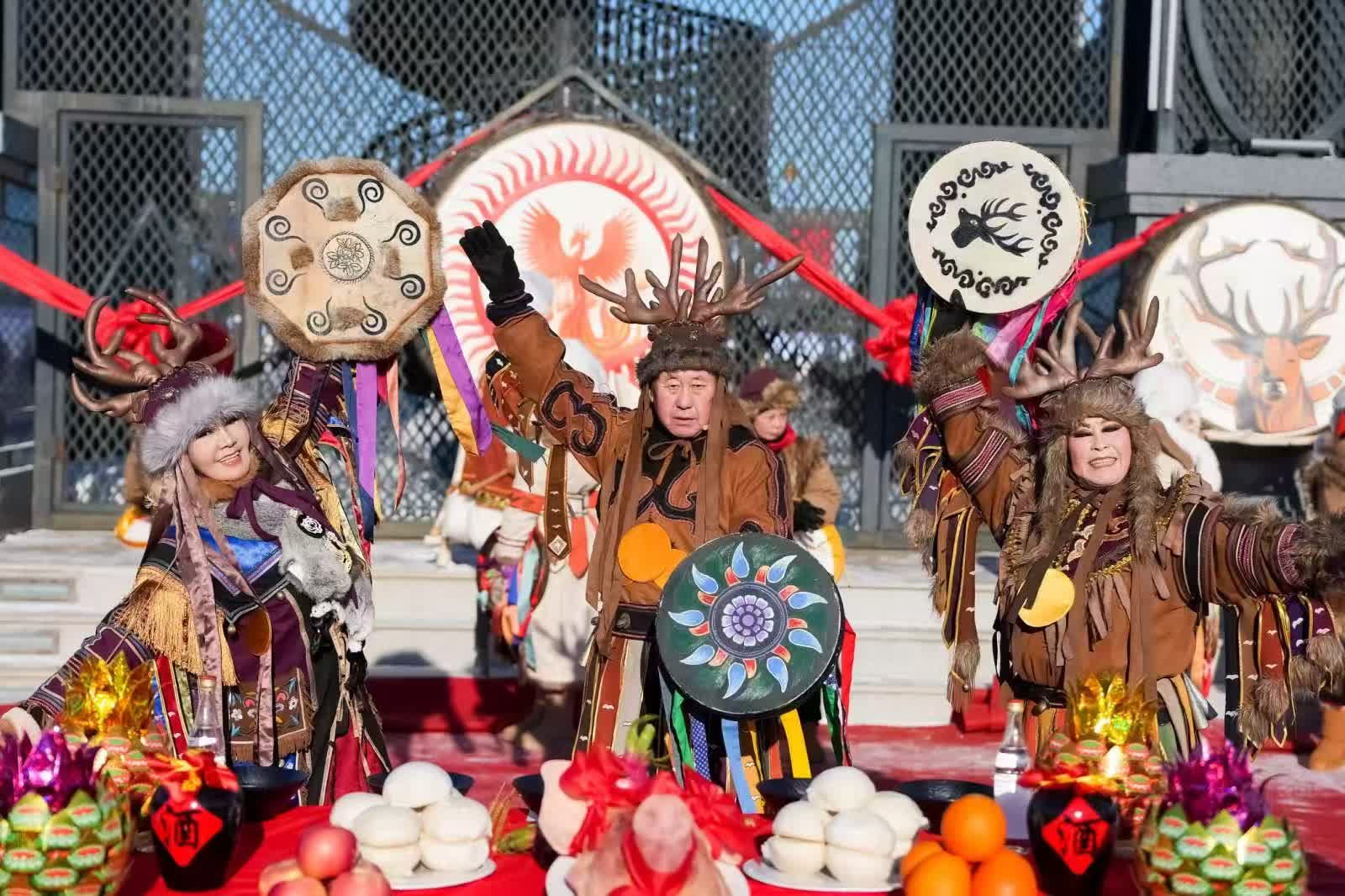 开幕式现场热闹非凡,亮点不断。“雪颂赫福”赫哲冰雪祈福大典分外吸睛,庄重而充满仪式感的祈福活动展现了深厚的民族文化底蕴和对美好生活的诚挚祈愿。在汇聚了关东地区的民俗韵味的“江畔印象”东北风情嘉年华中,花棉袄、大秧歌、冰爬犁等民俗元素纷纷亮相,为游客呈现了一幅生动的民俗画卷。